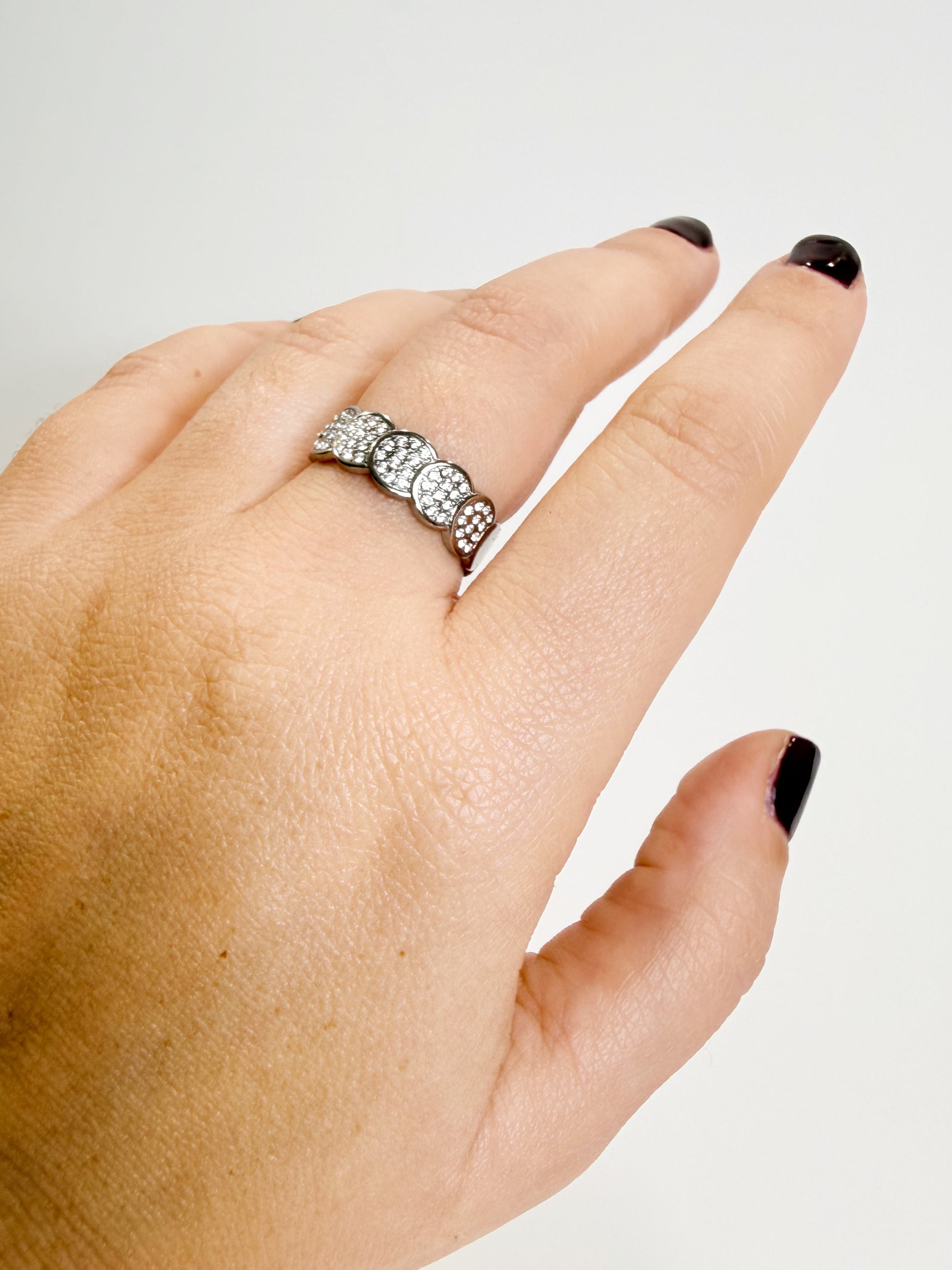 Anello dalla misura regolabile con pavè di strass. Colore silver.