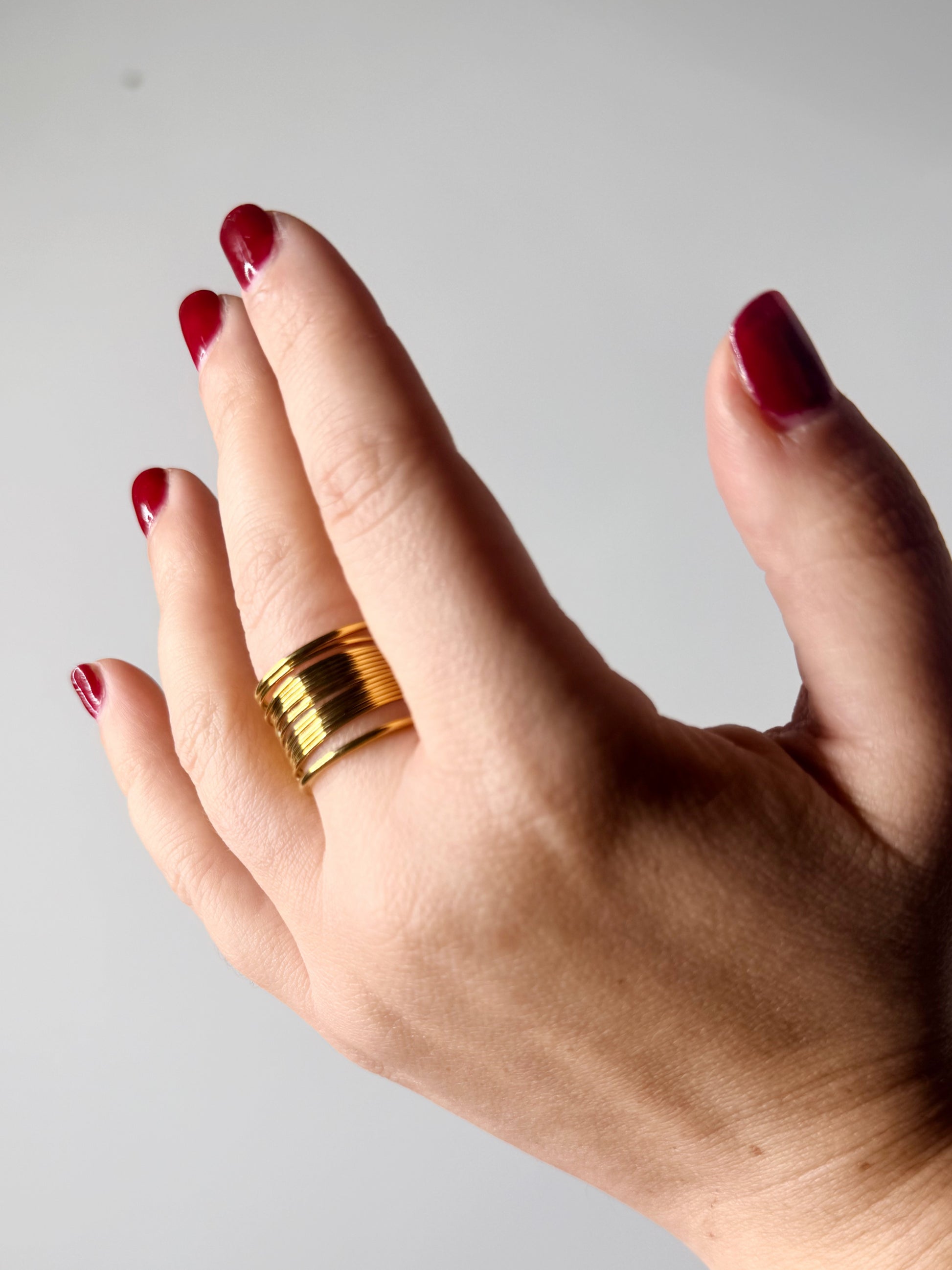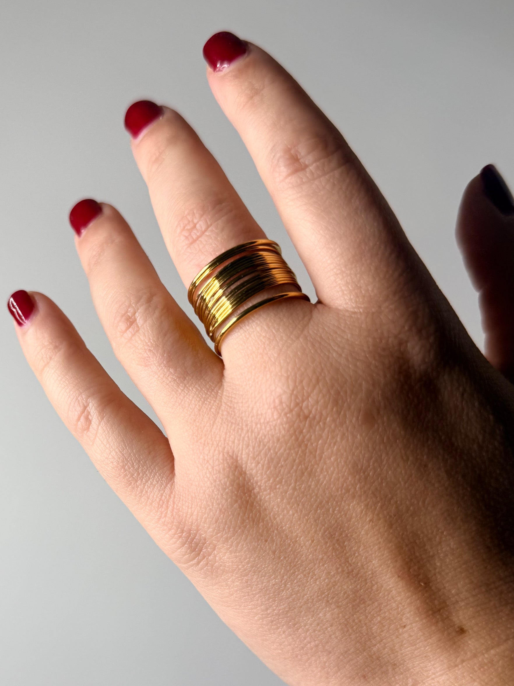 Elegante anello dallo stile minimal realizzato con multi fili sottilissimi. dimensilne regolabile quindi perfetto per qualsiasi dimensione.