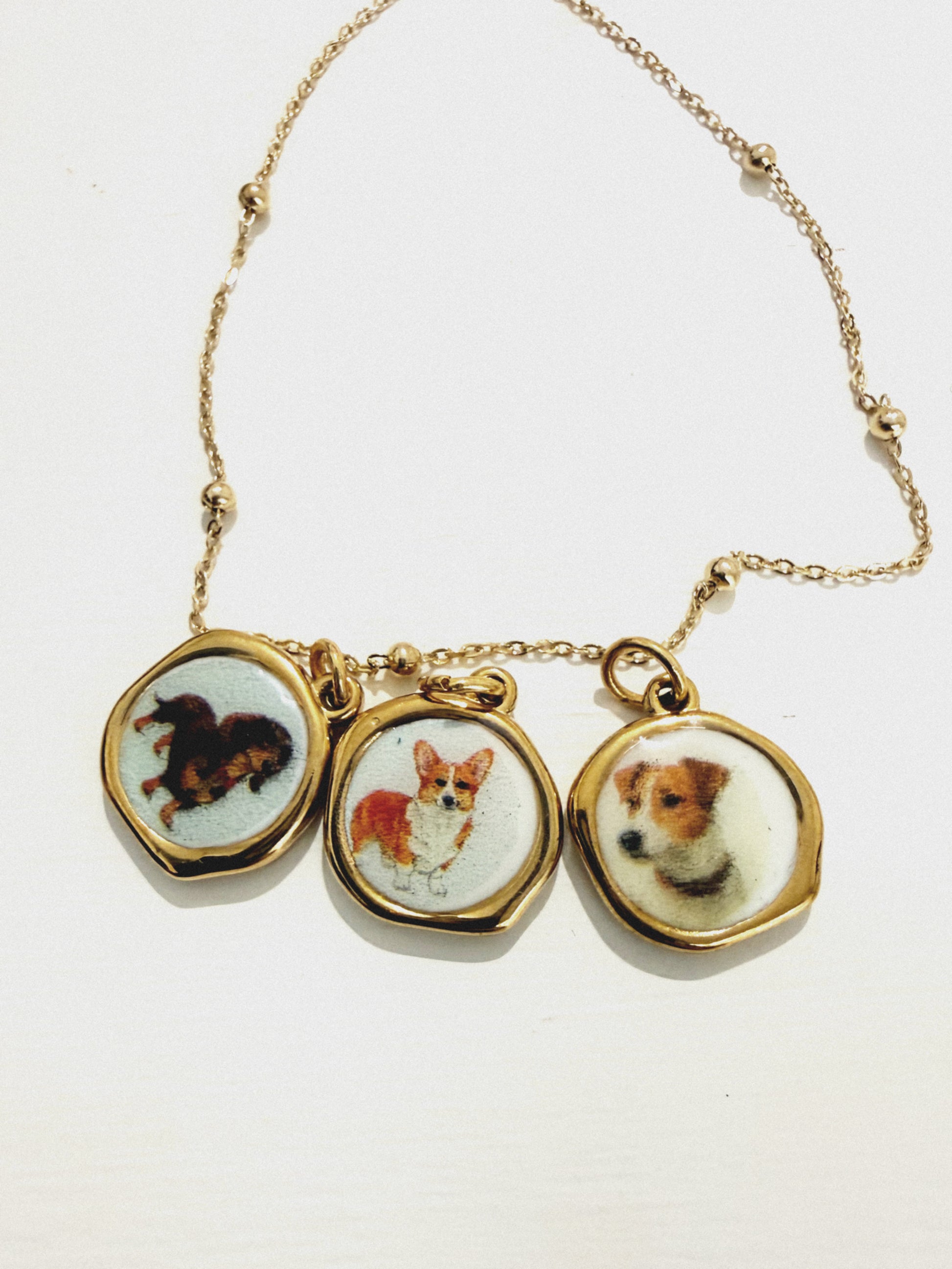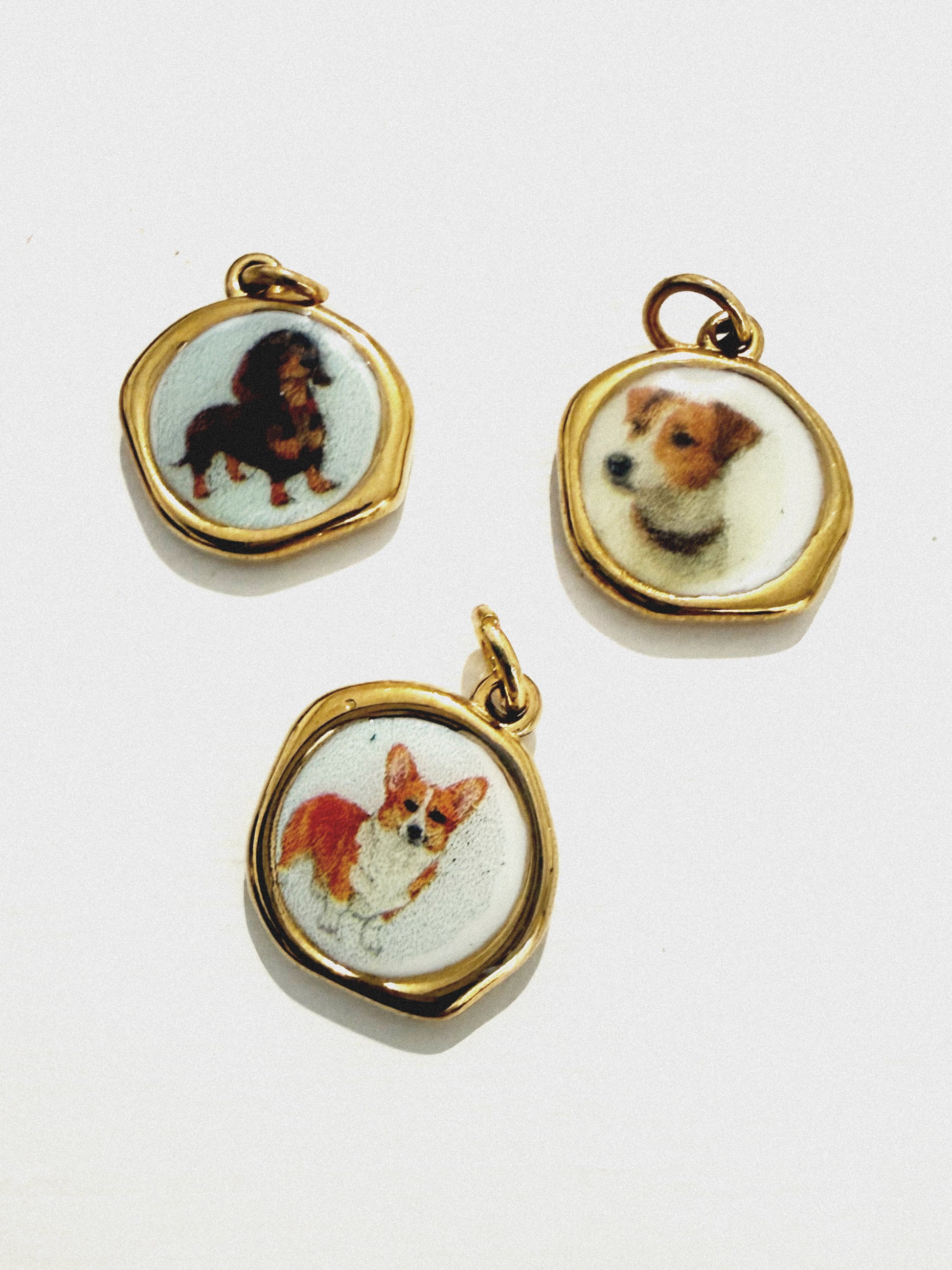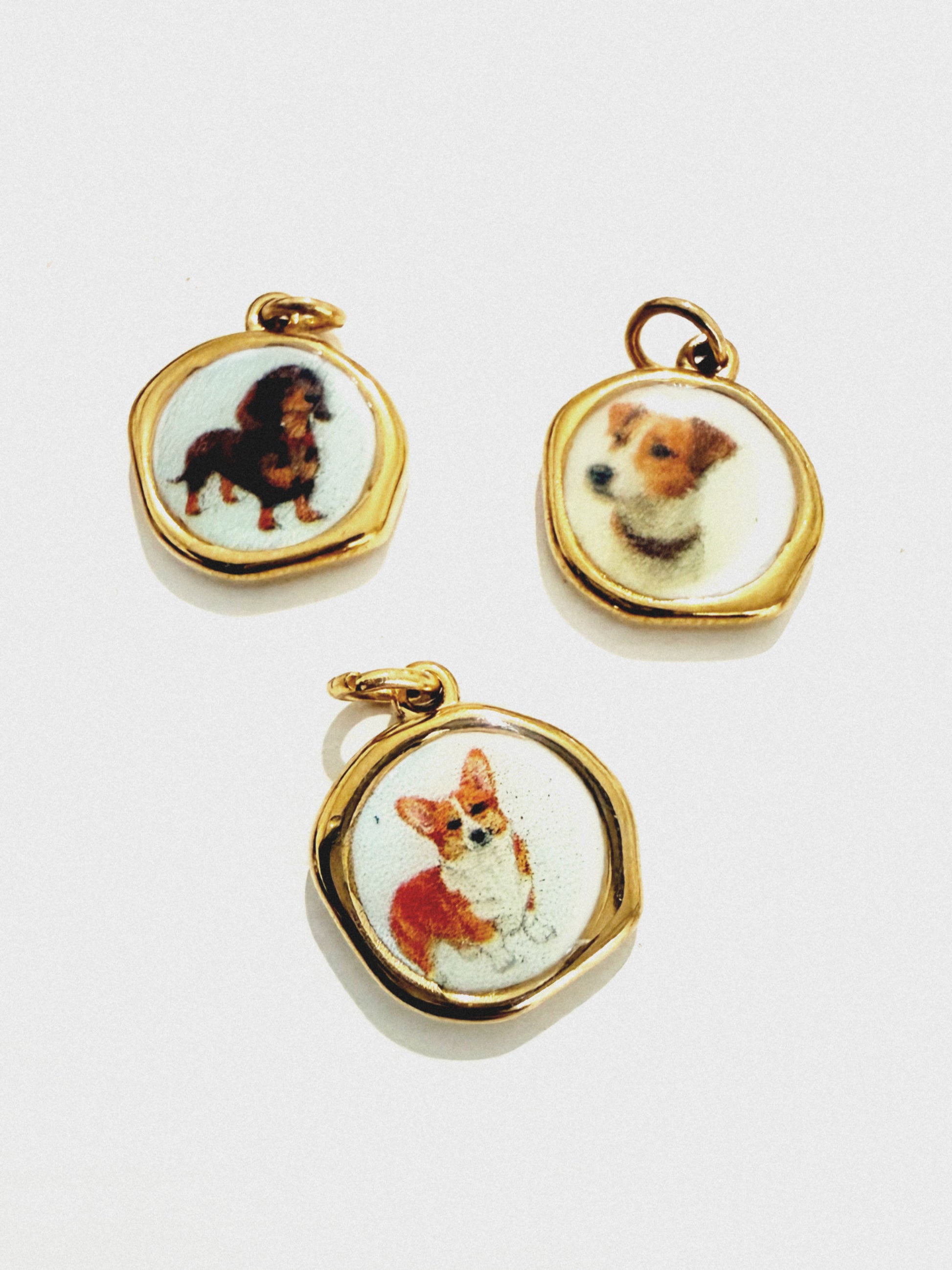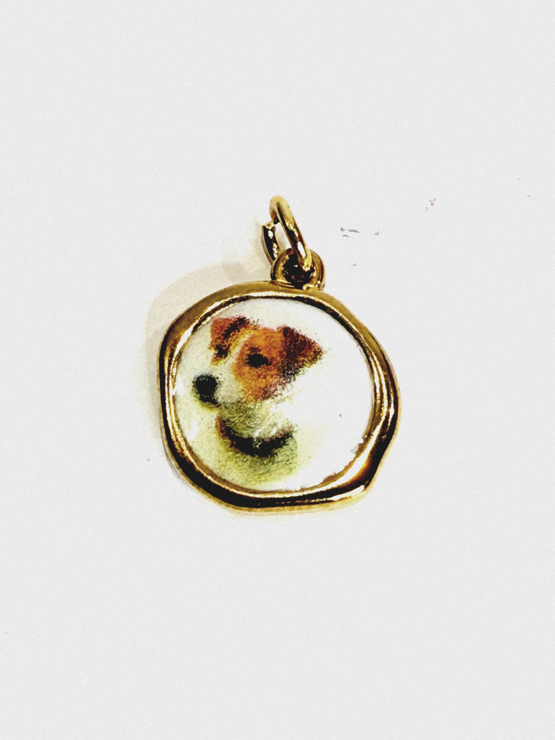 Delizioso ciondolo fatto a mano in Italia con illustrazione cane. Se acquistato con la collana verrà montato su di essa e confezionato.