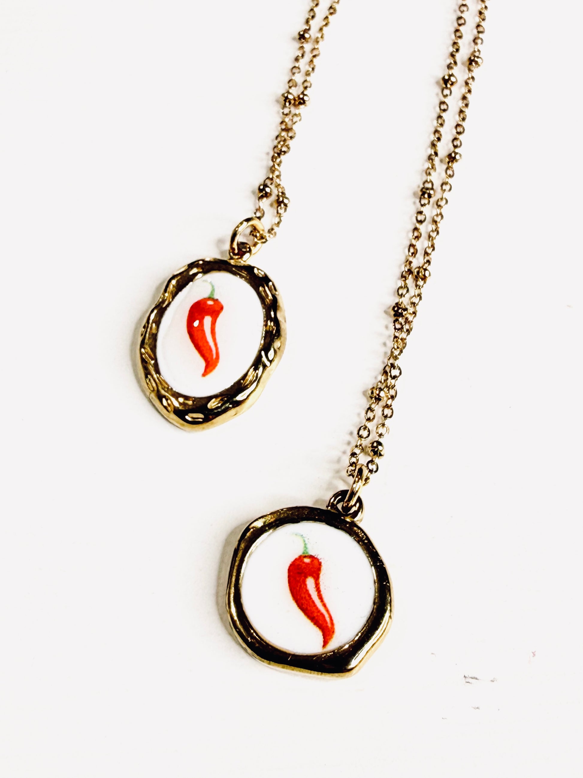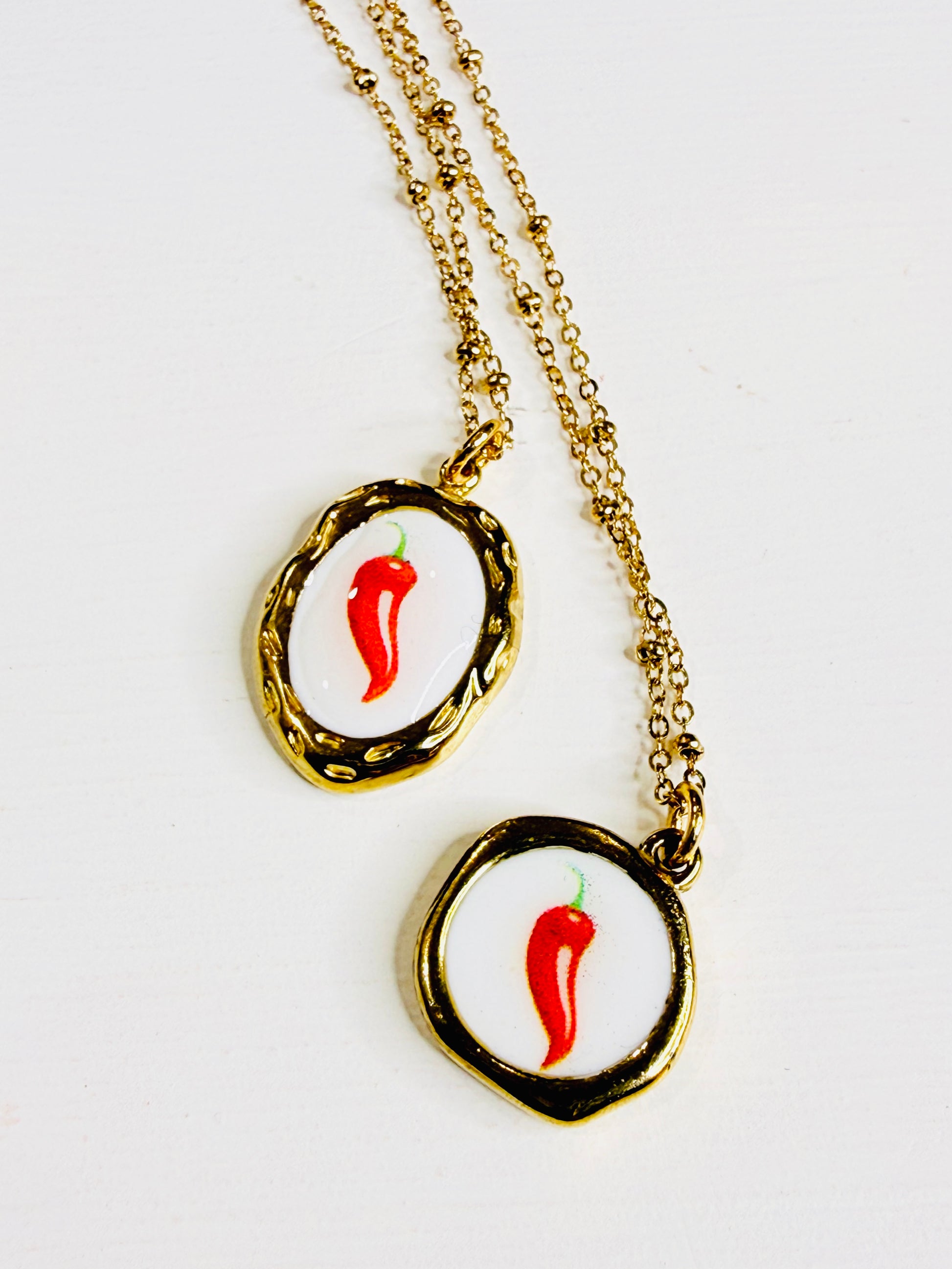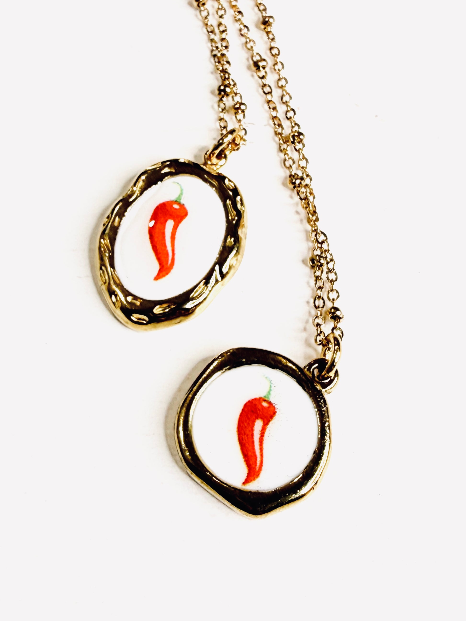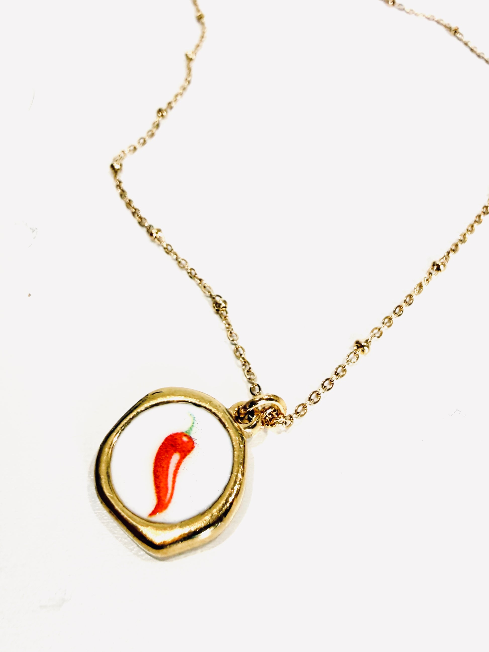 Sfizioso ciondolo realizzati in acciaio inossidabile e smalto con illustrato un peperoncino rosso!