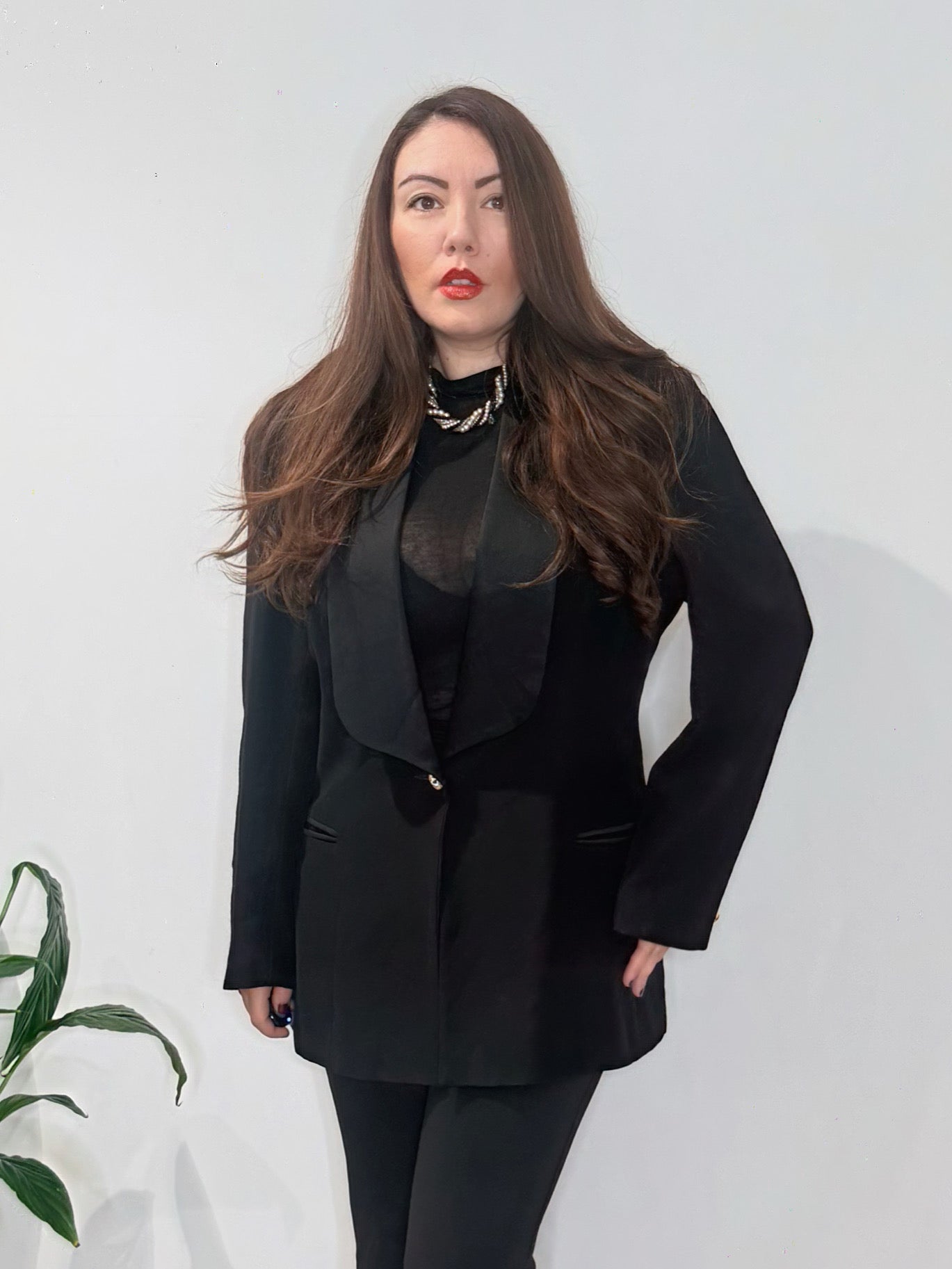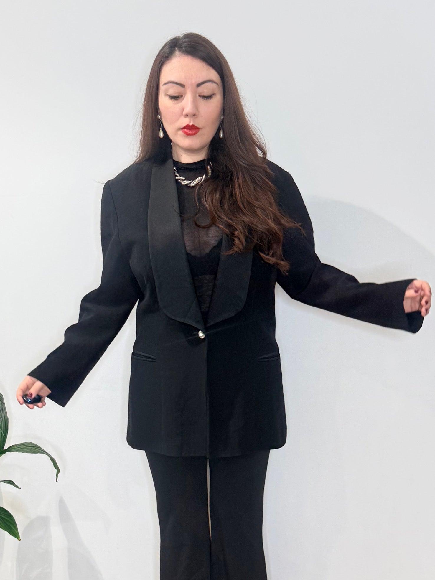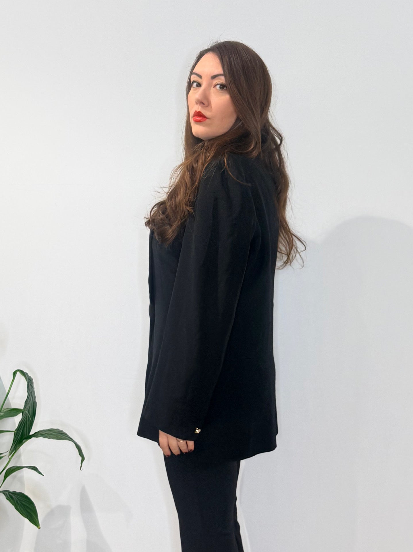 Perfetta da abbinare ad un pantalone flare oppure ad un pantalone palazzo. La giacca è in condizioni buonissime ma manca un bottone sul polsino!