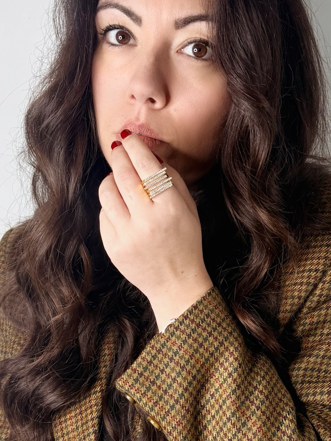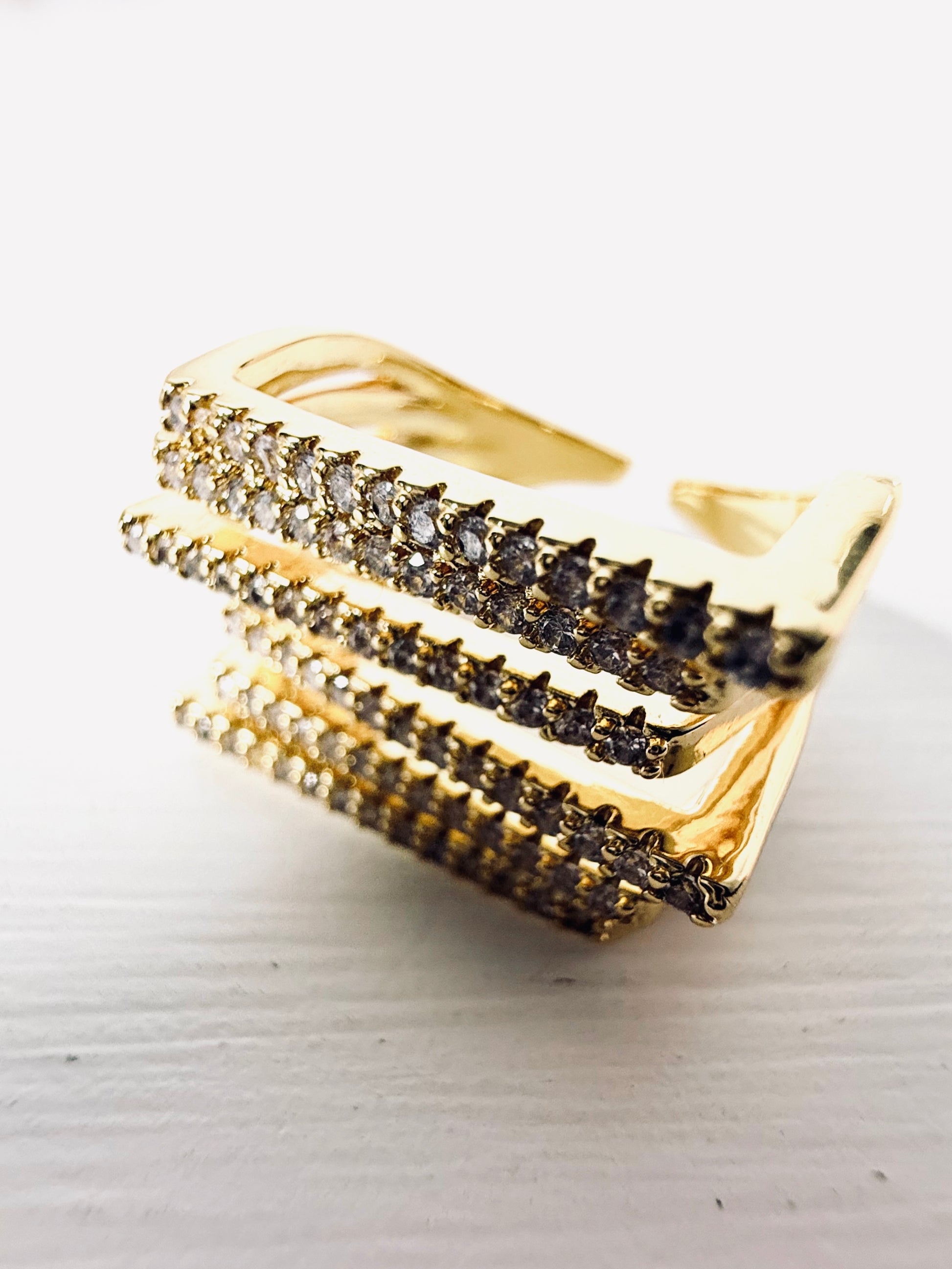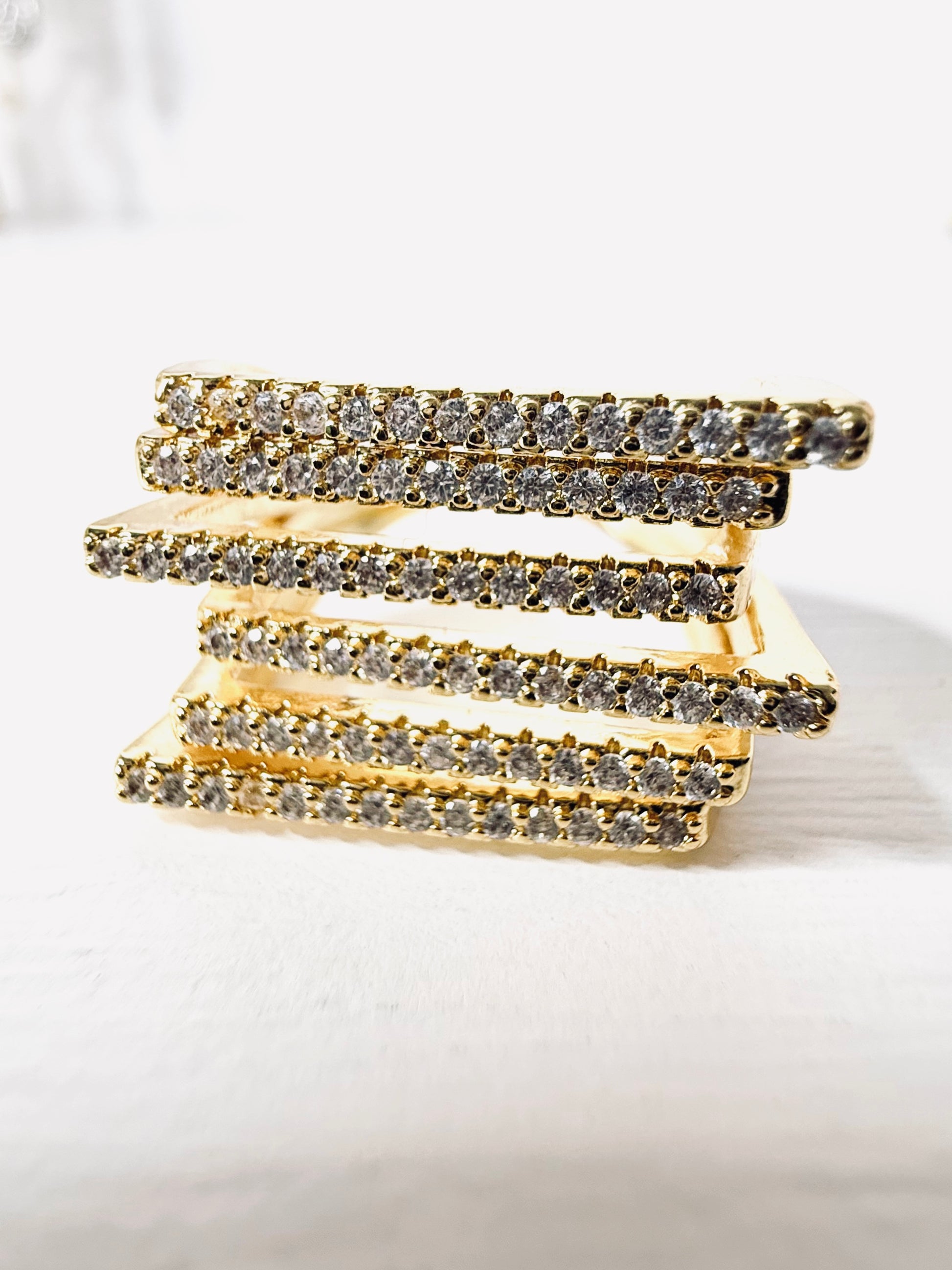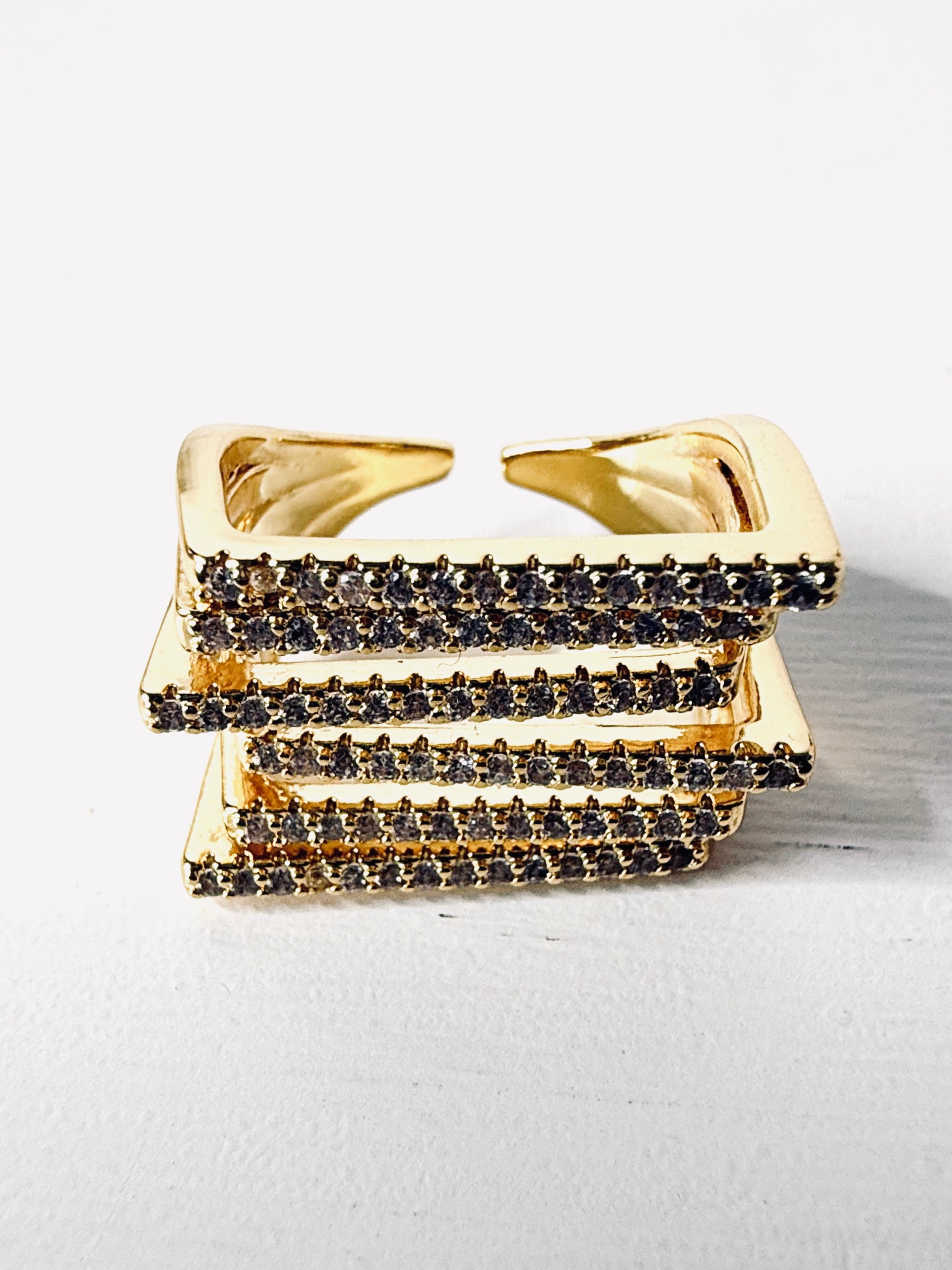 Elegante Anello con design geometrico e 6 fasce di strass. Modello regolabile quindi perfetto per qualsiasi misura!