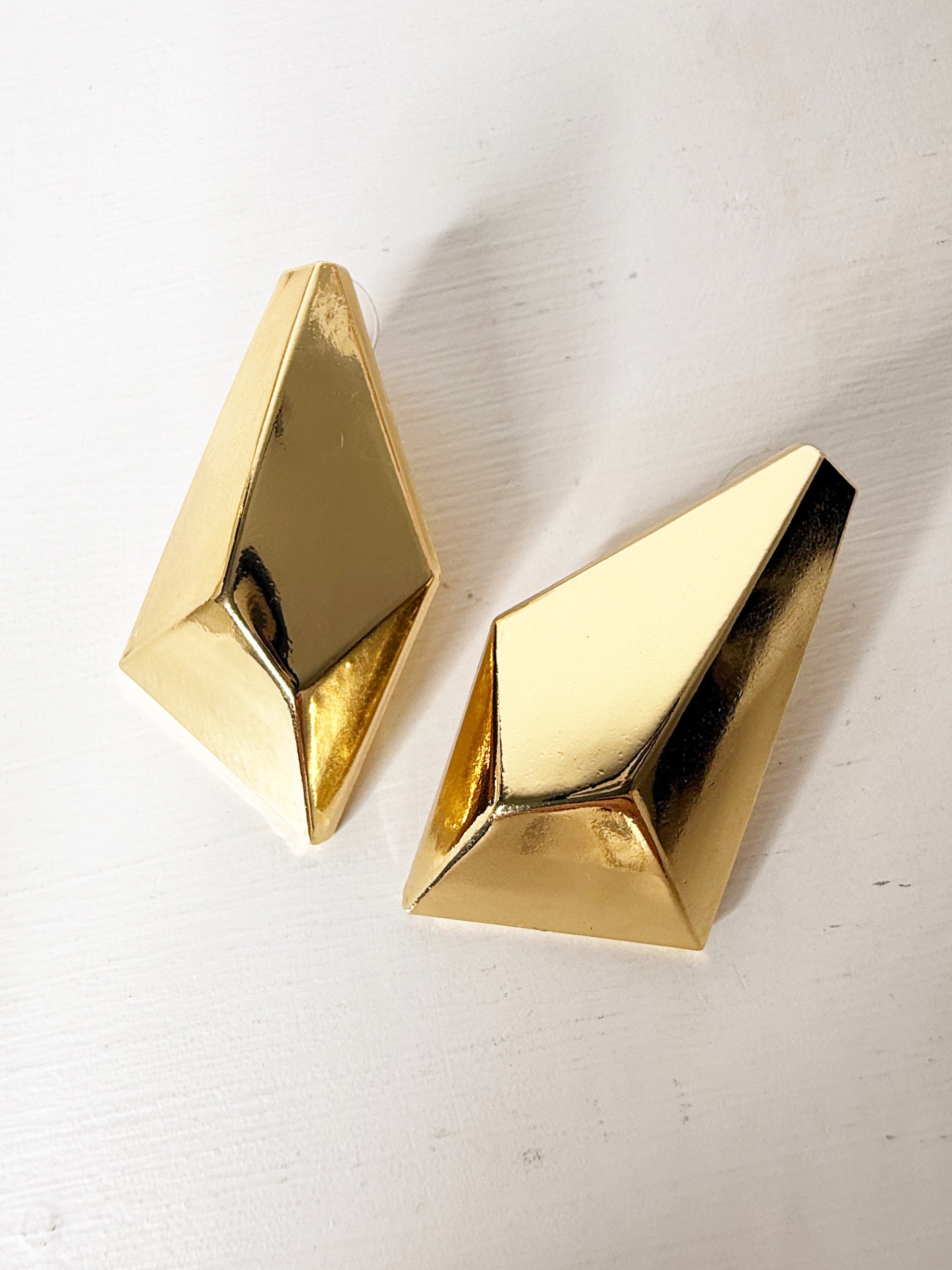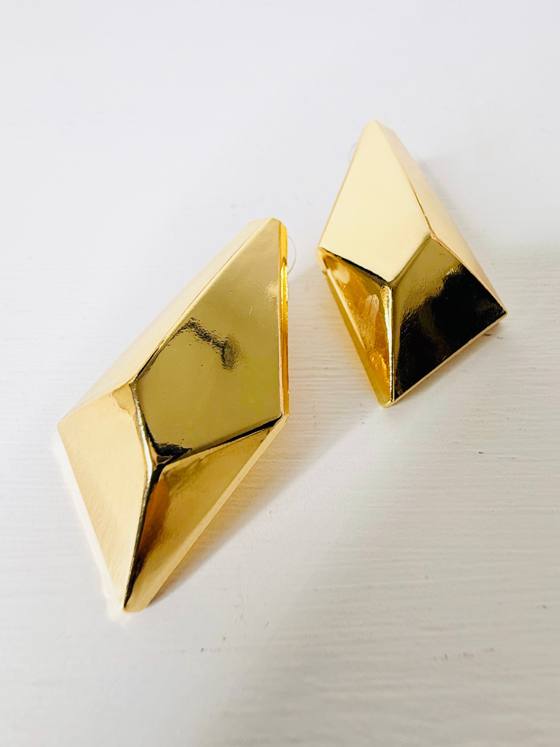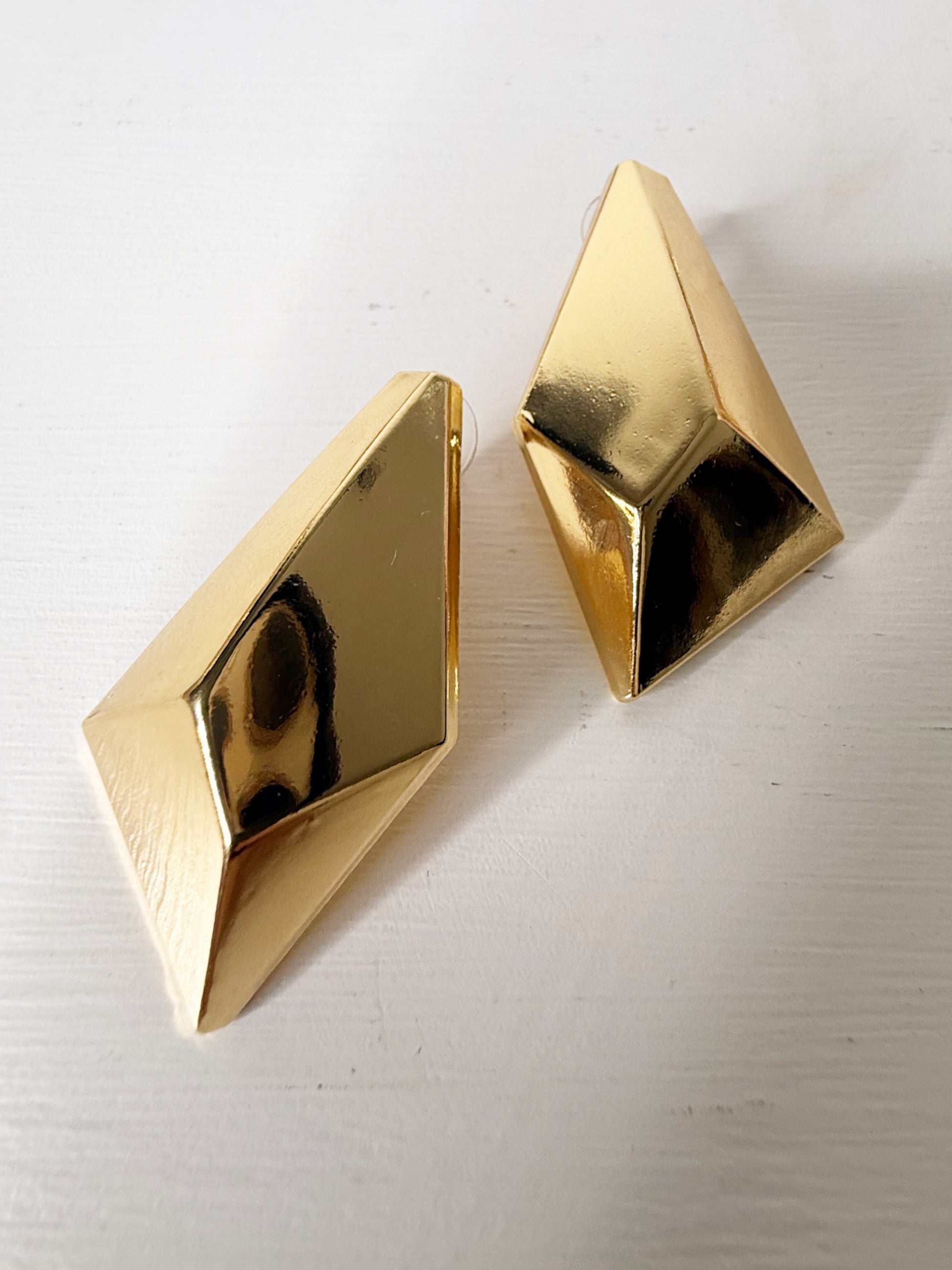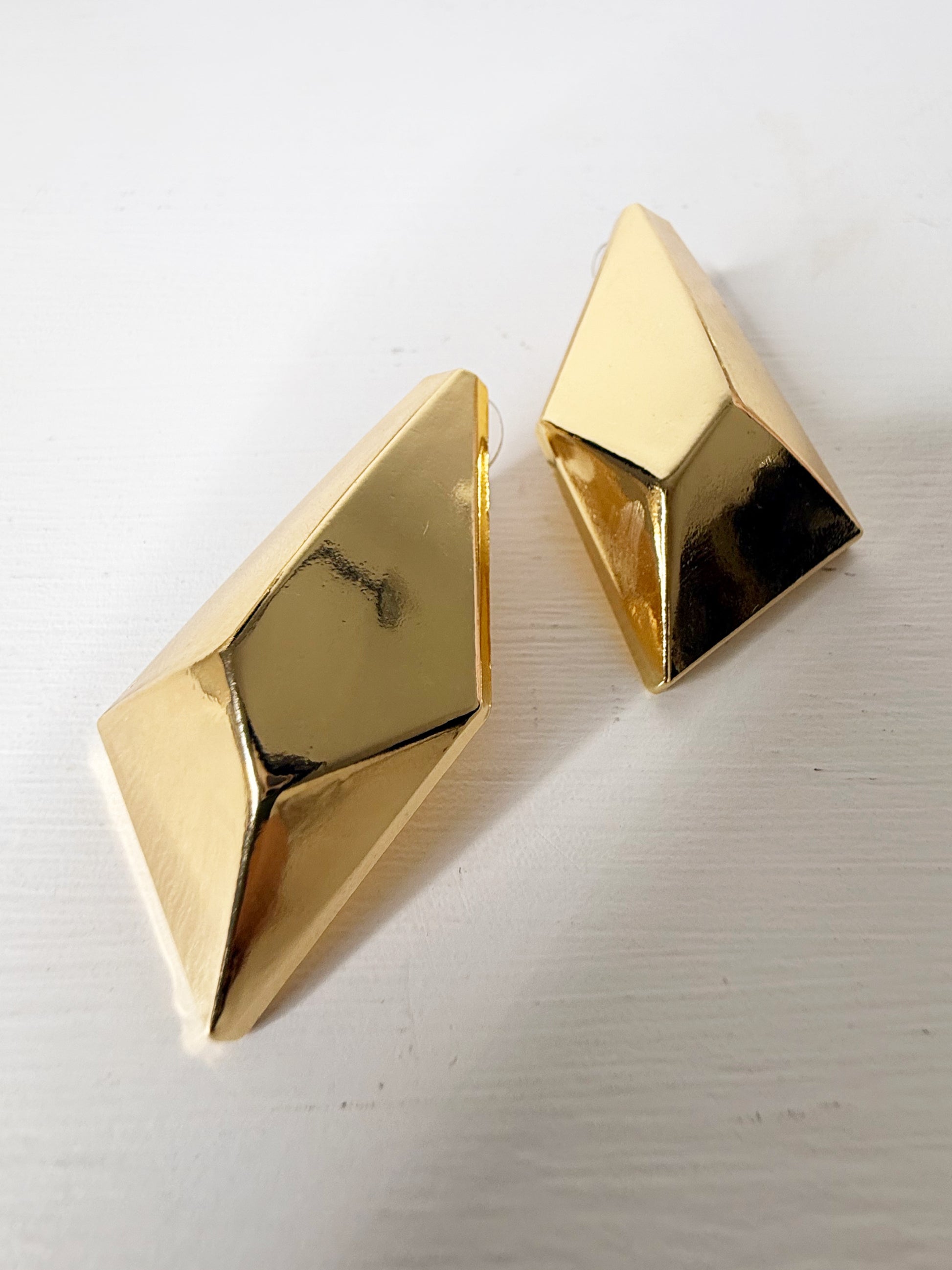 Maxi orecchini geometrici e luminosissimi con chiusura a farfallina.