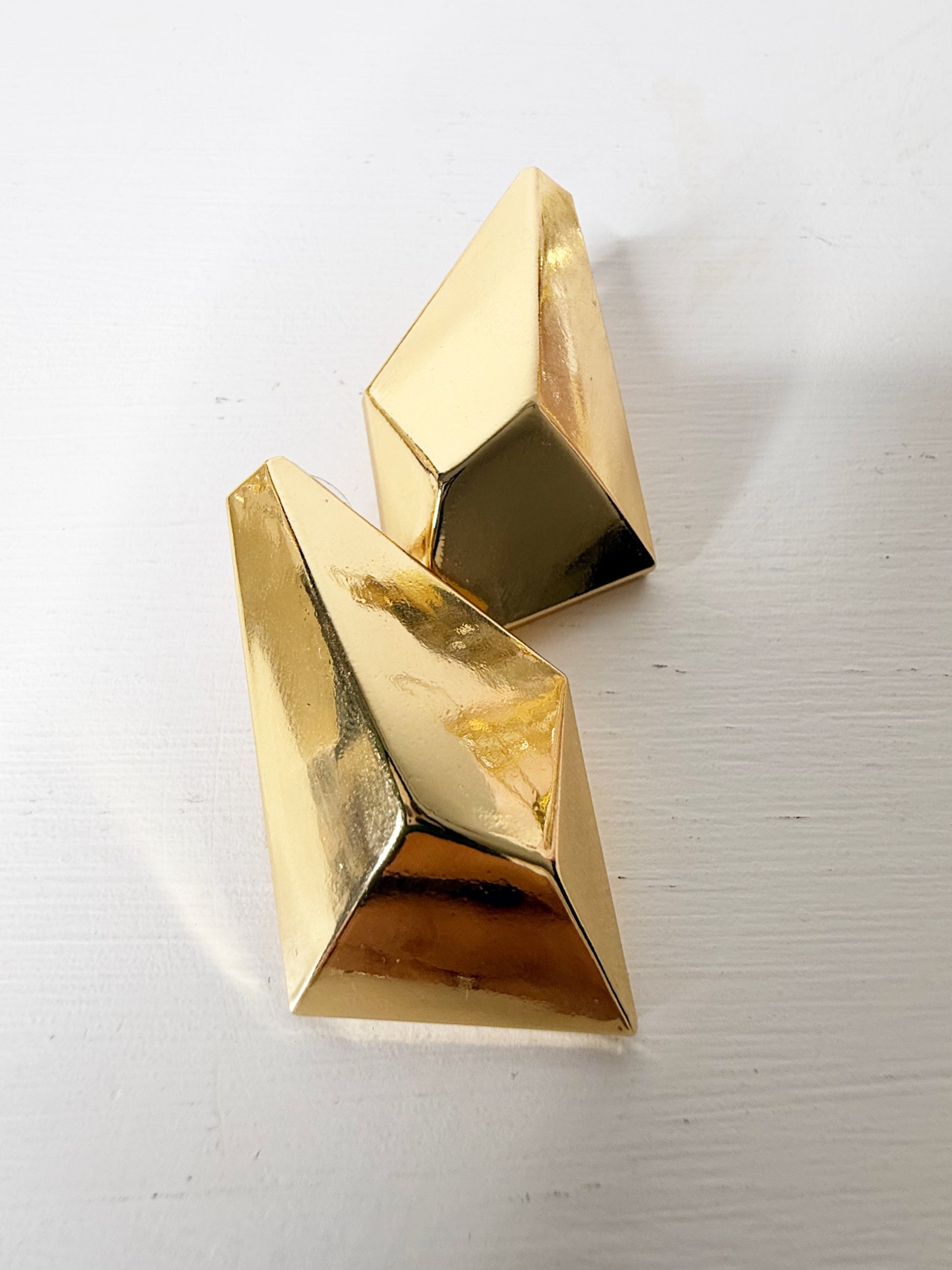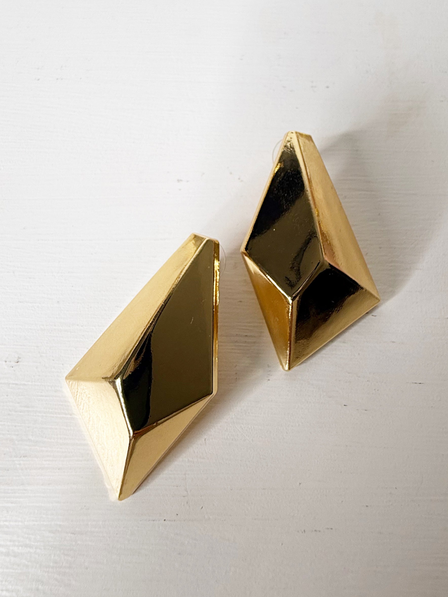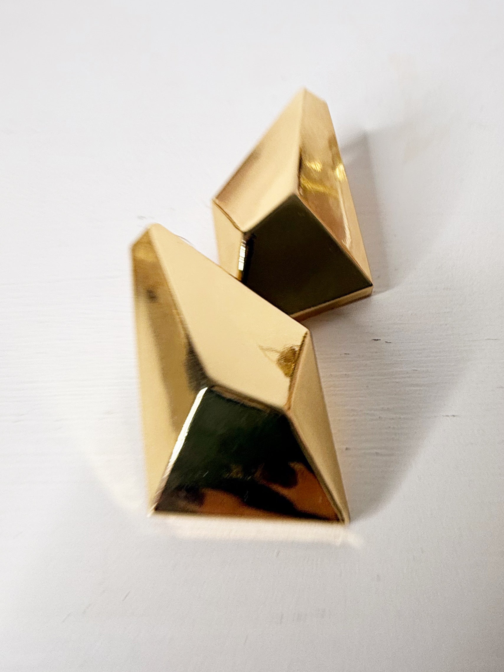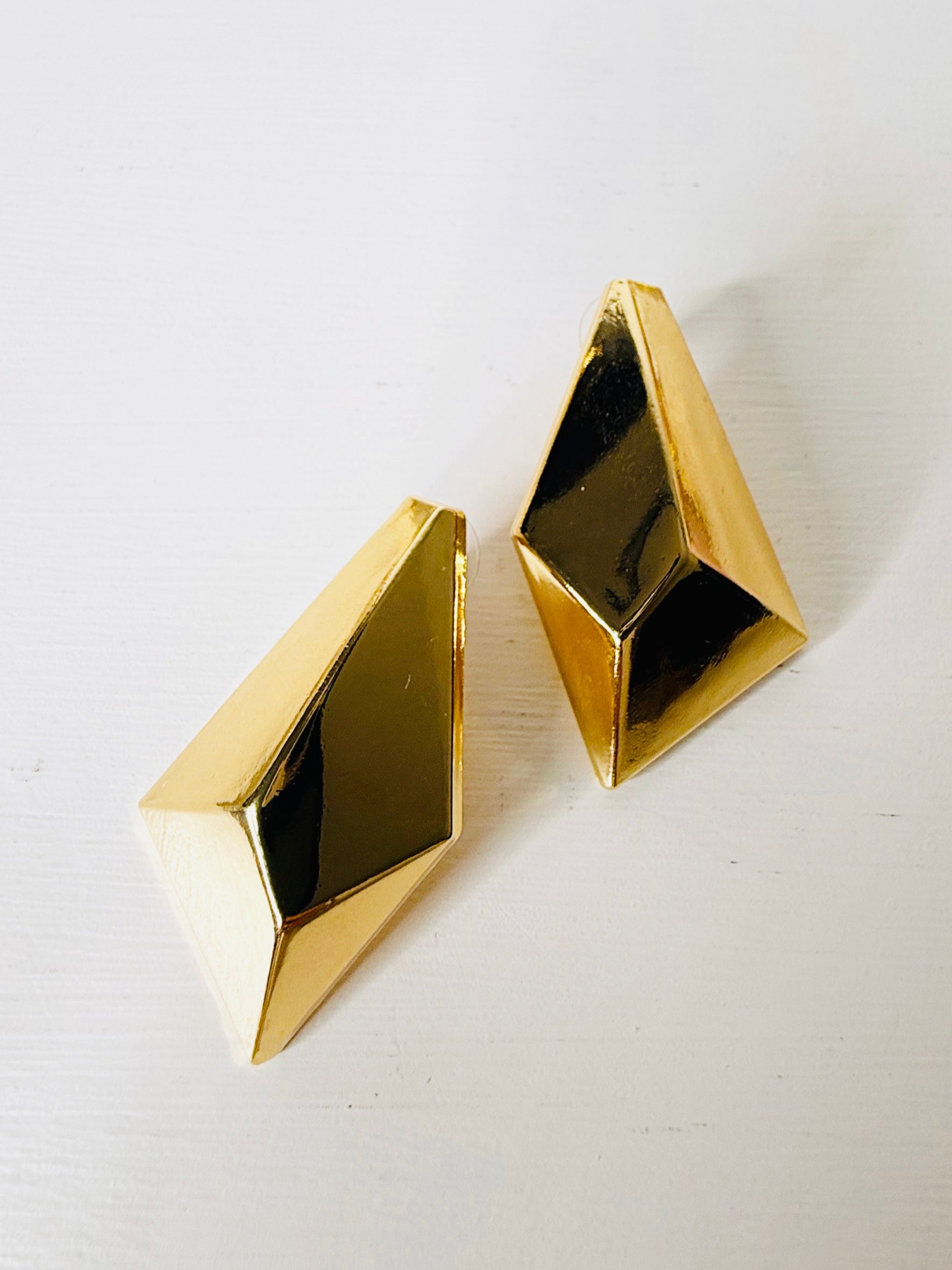 Maxi orecchini geometrici e luminosissimi con chiusura a farfallina.