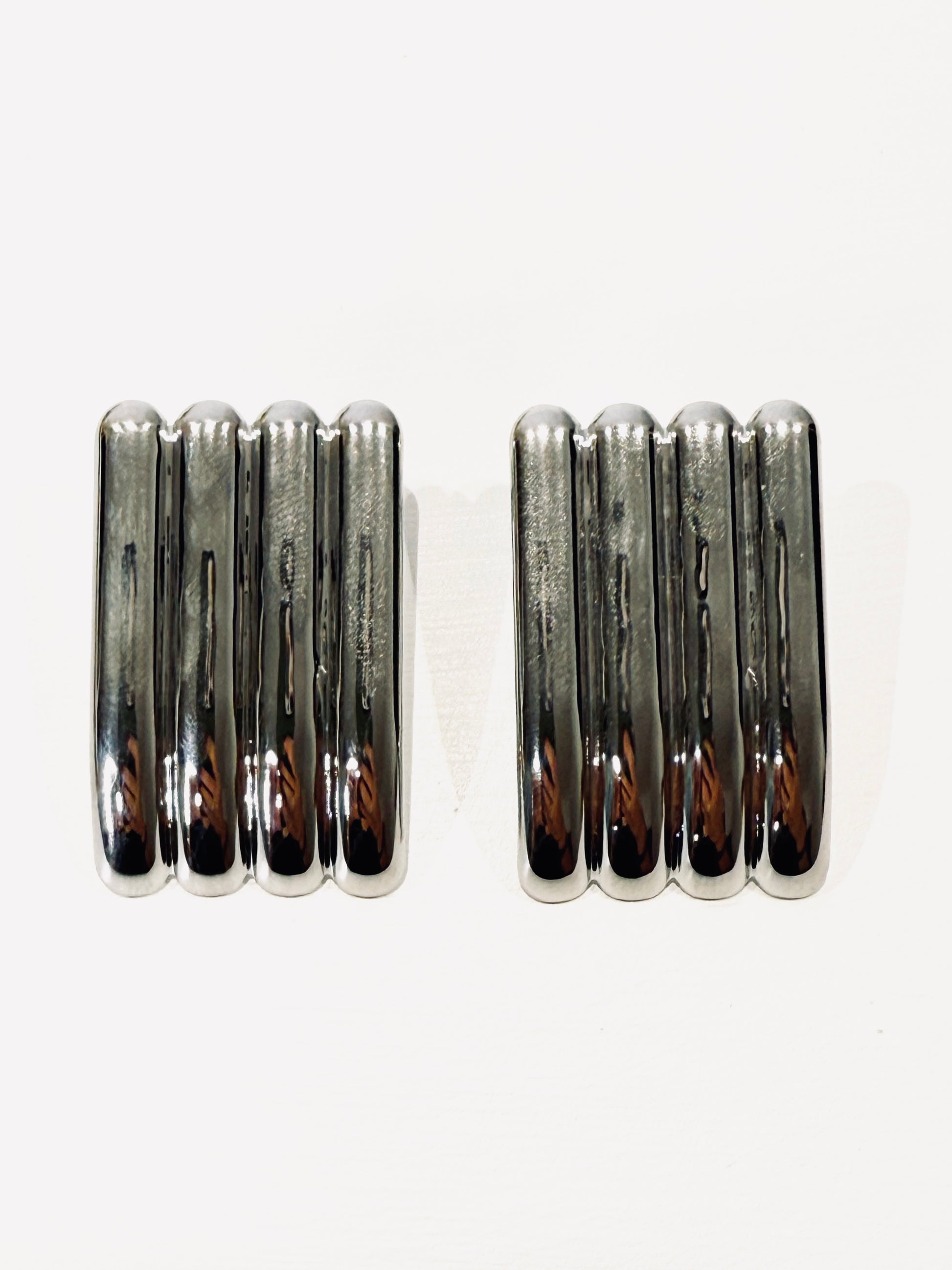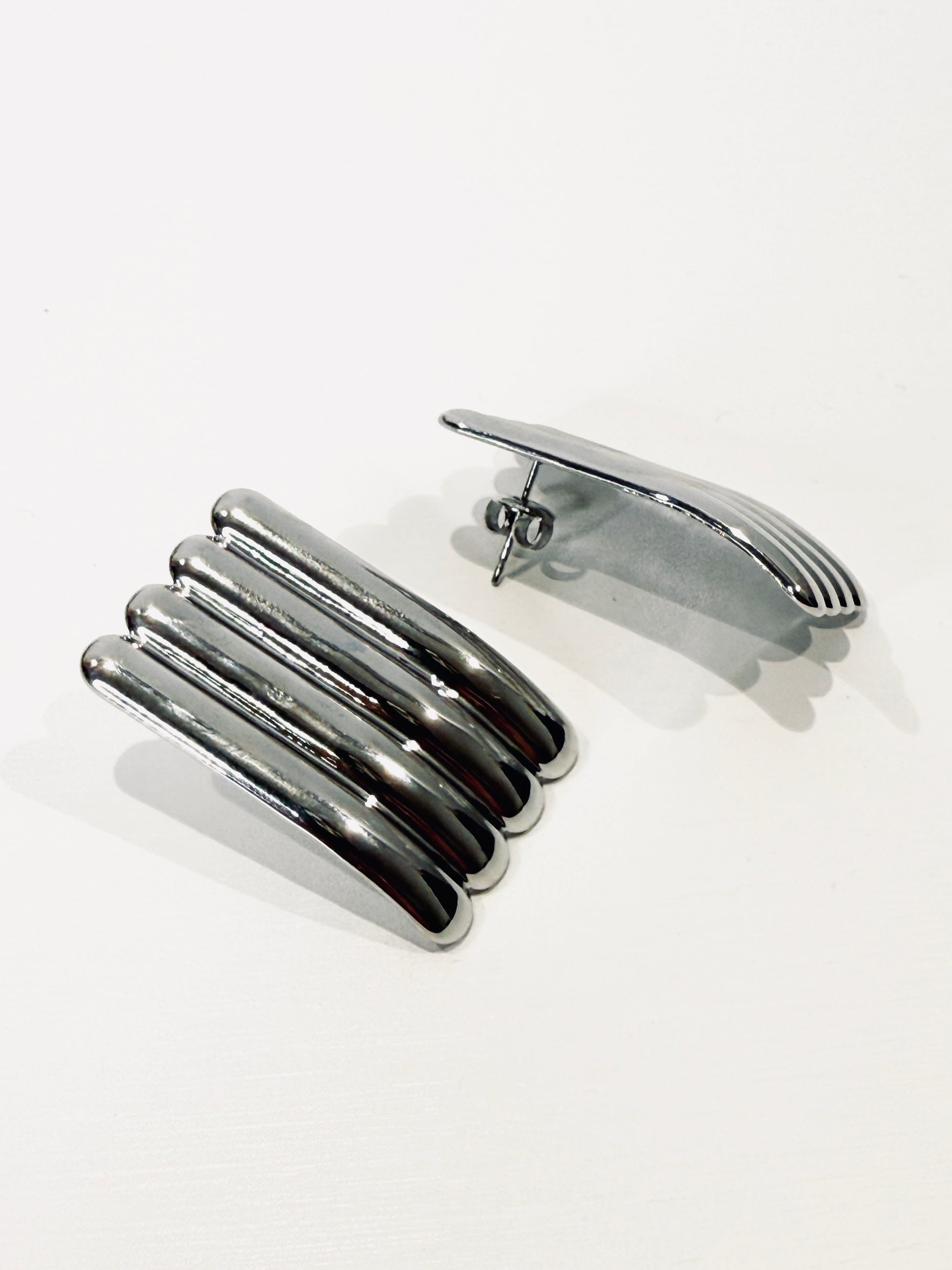 Eleganti orecchini con chiusura a farfallina realizzati in silver. Design anni 80.
