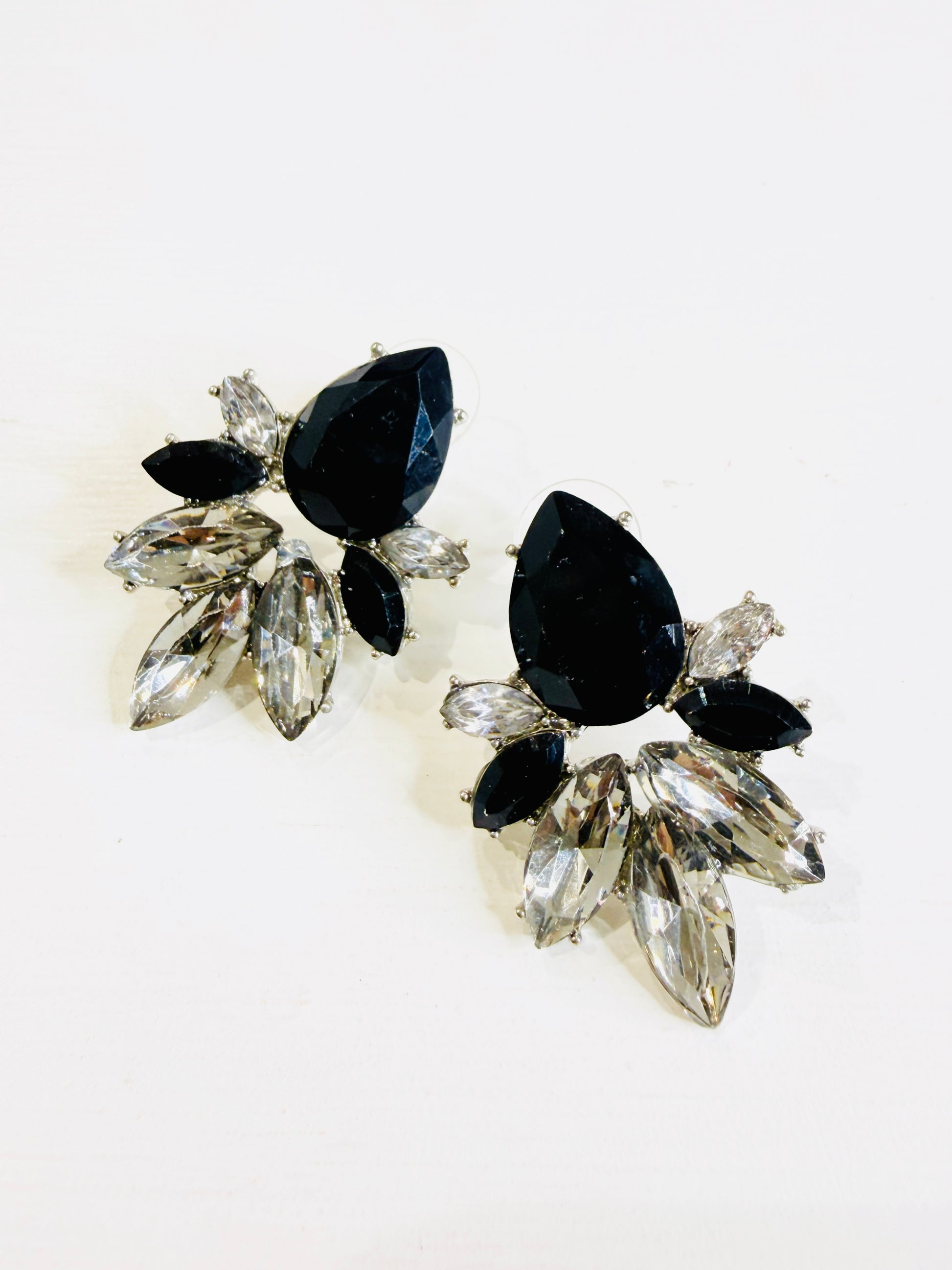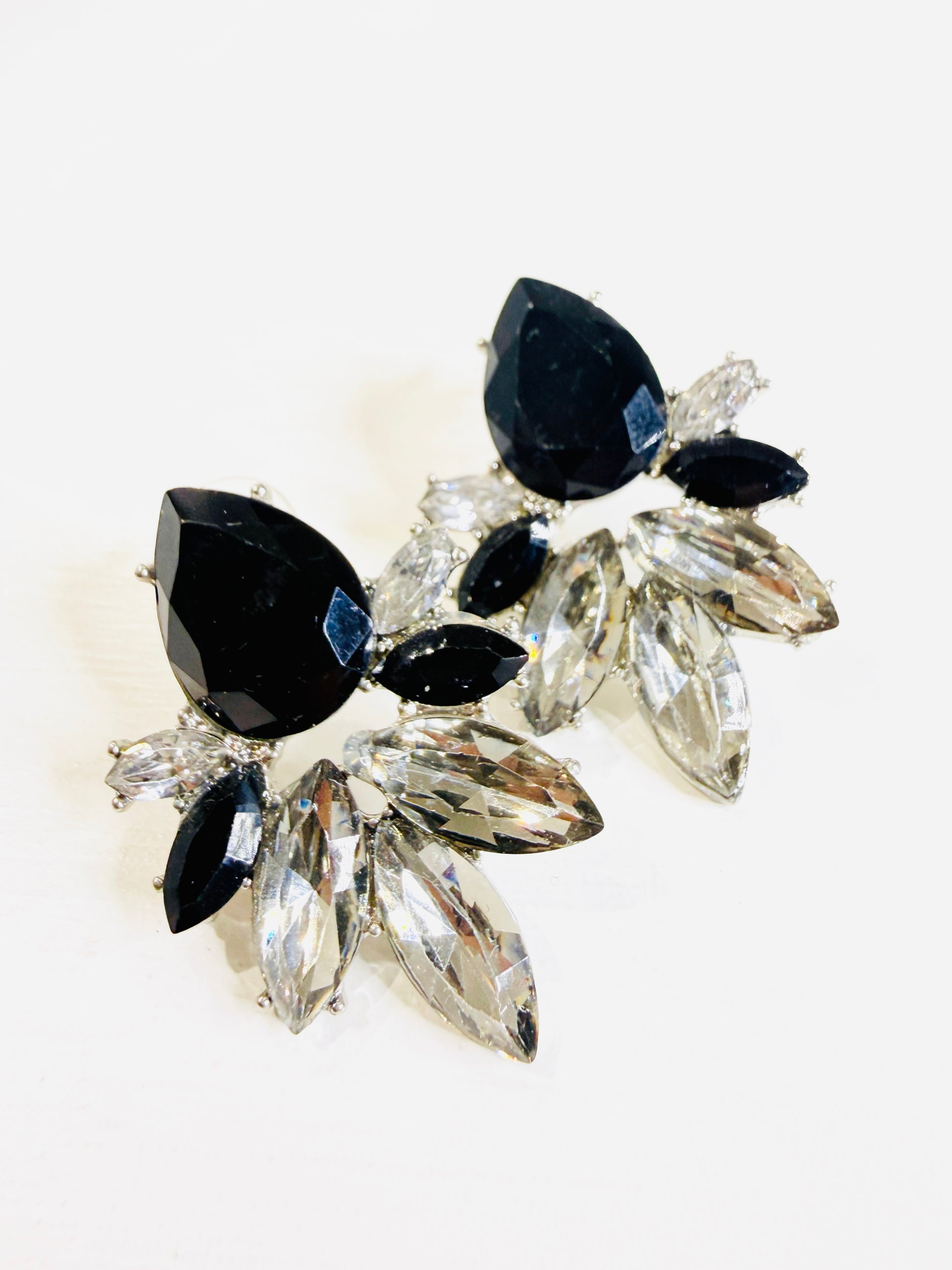 Orecchini con strass neri e bianchi taglio Marquise e goccia.
