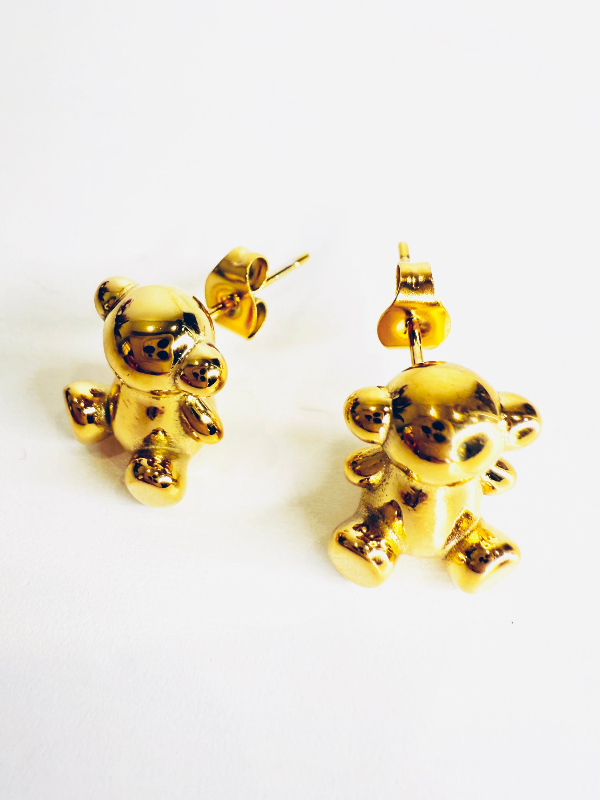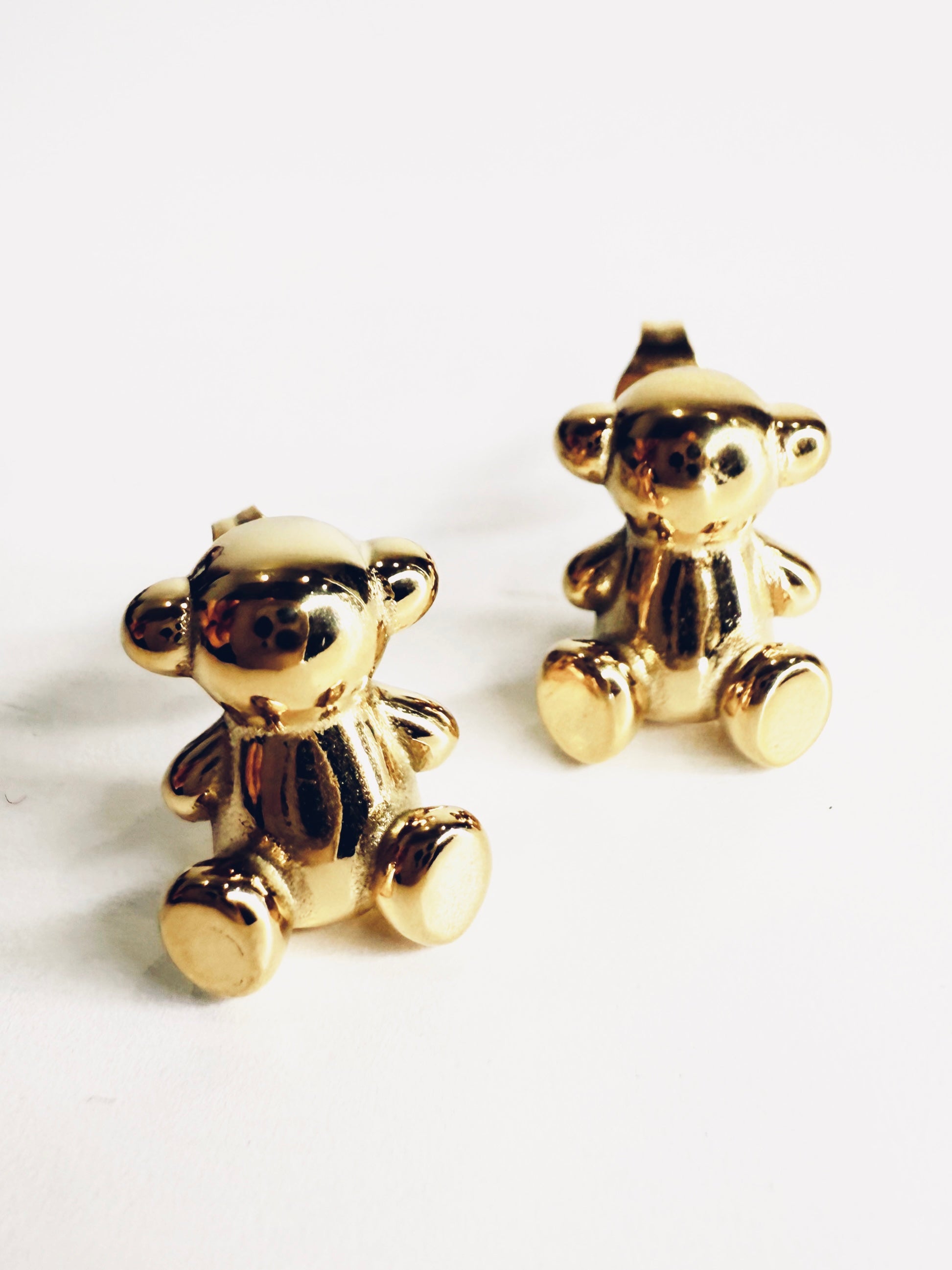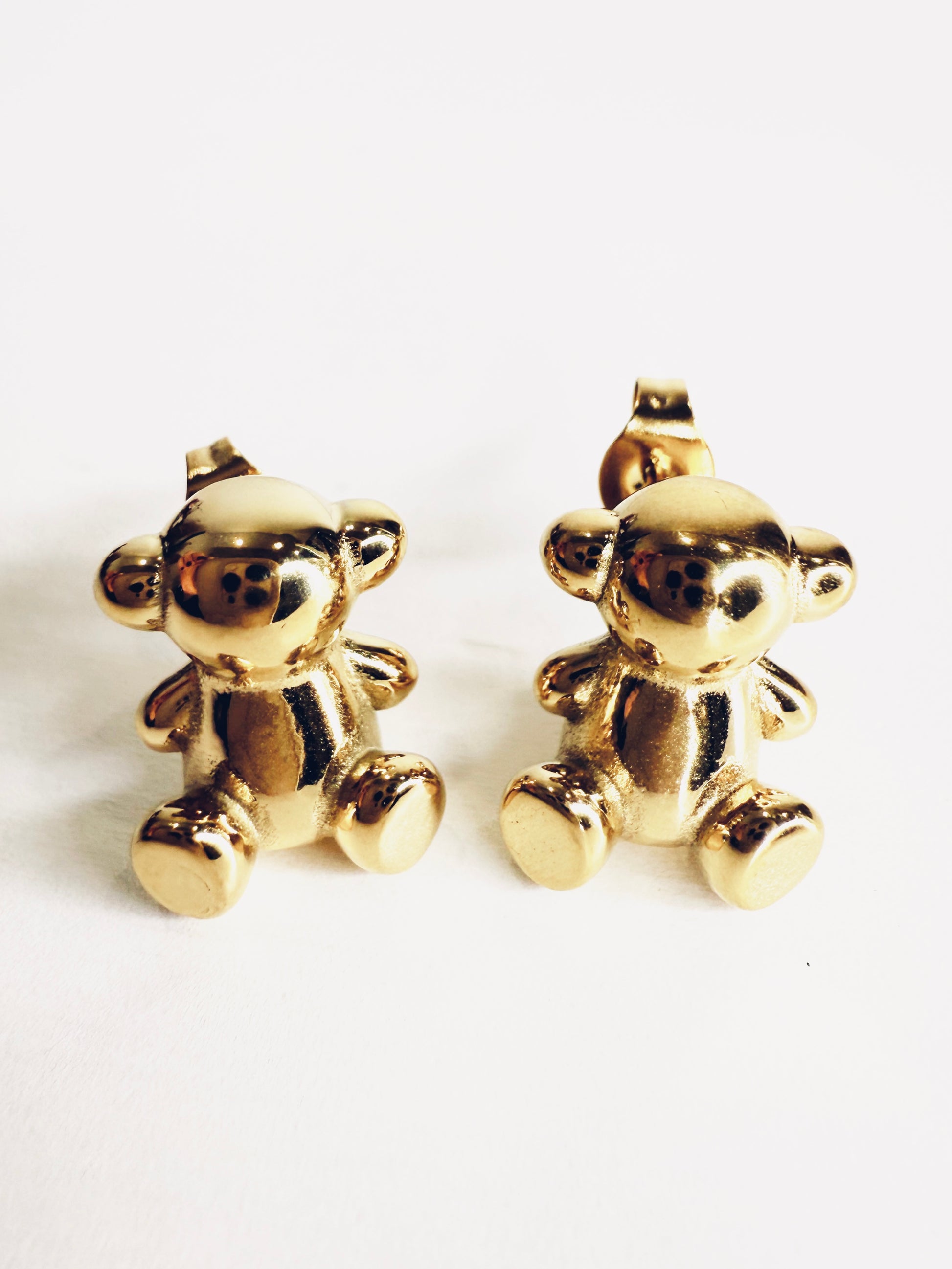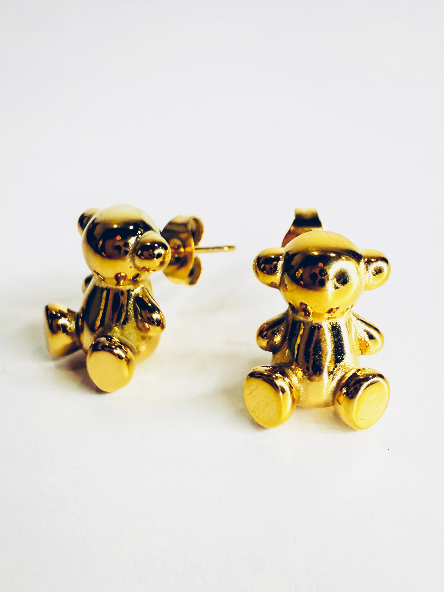 Graziosi e divertenti orecchini a forma di orsetto seduto. Materiale: acciaio inossidabile. Venduti con dustbag.