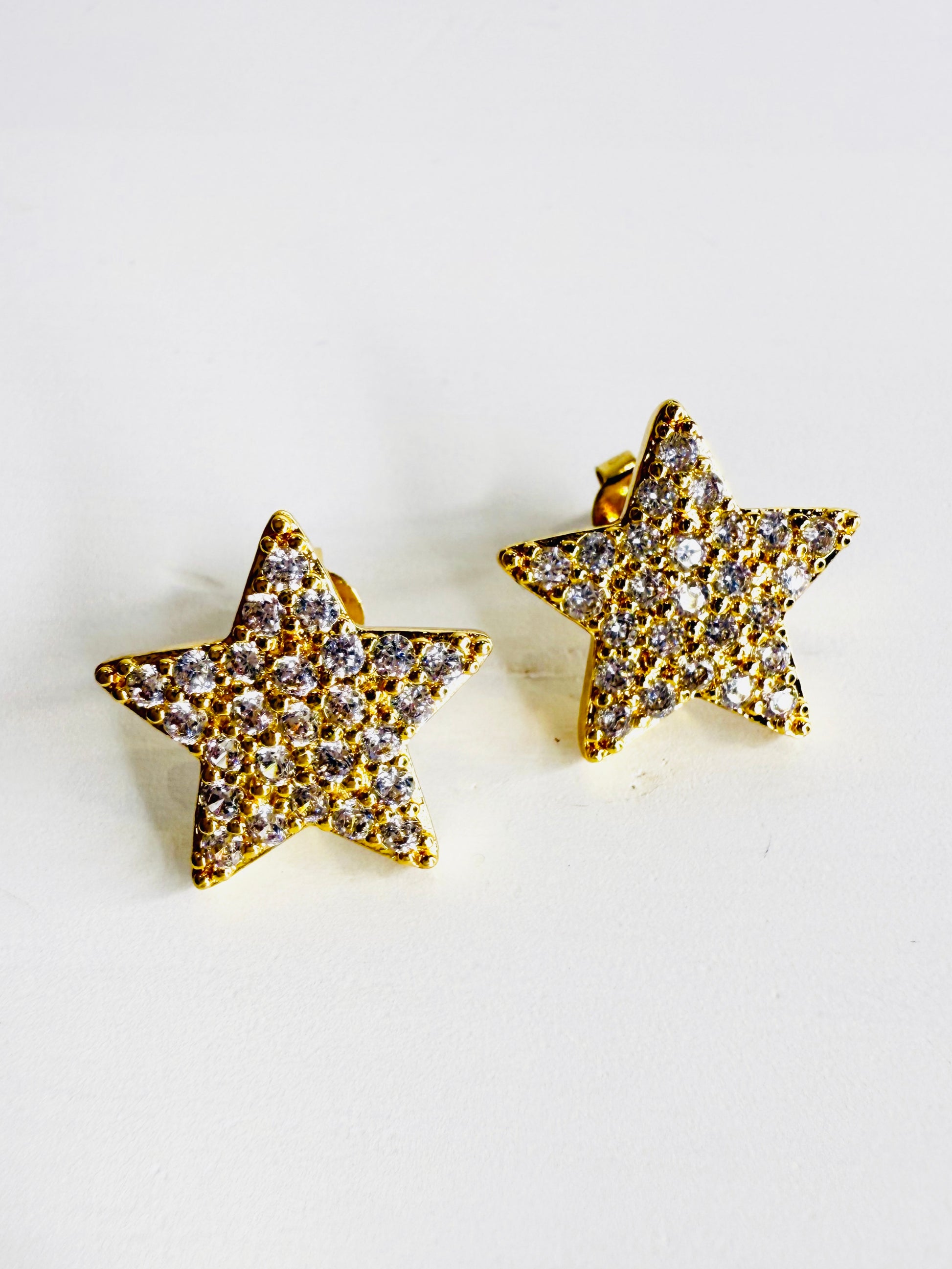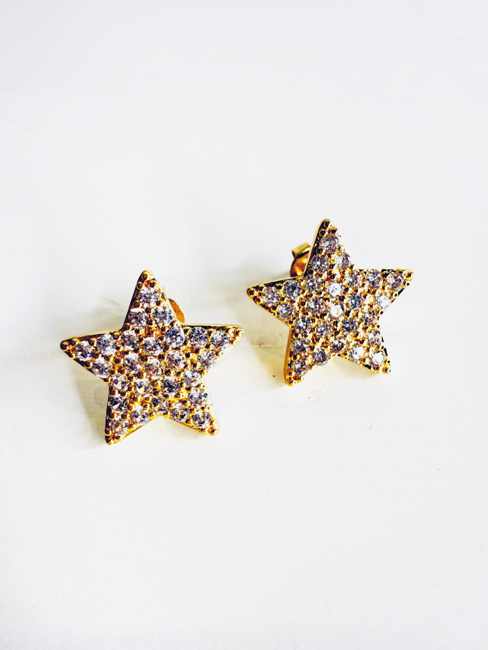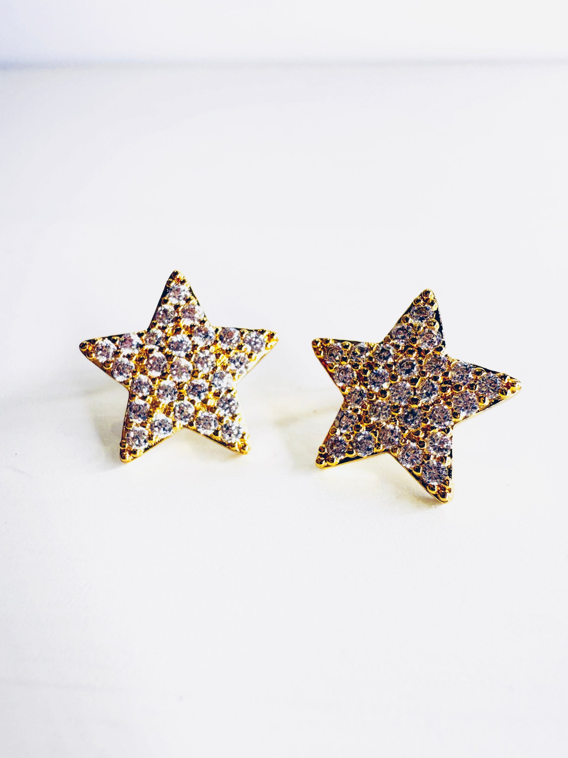 Orecchini a forma di stella con pavè di strass. Realizzati in acciaio inossidabile. Base gold. Venduti con dustbag.