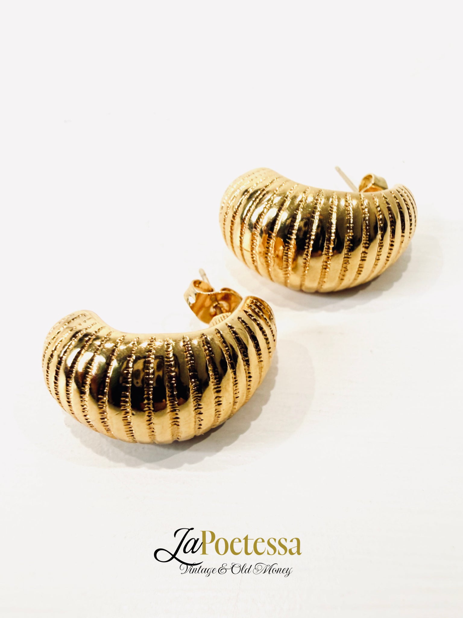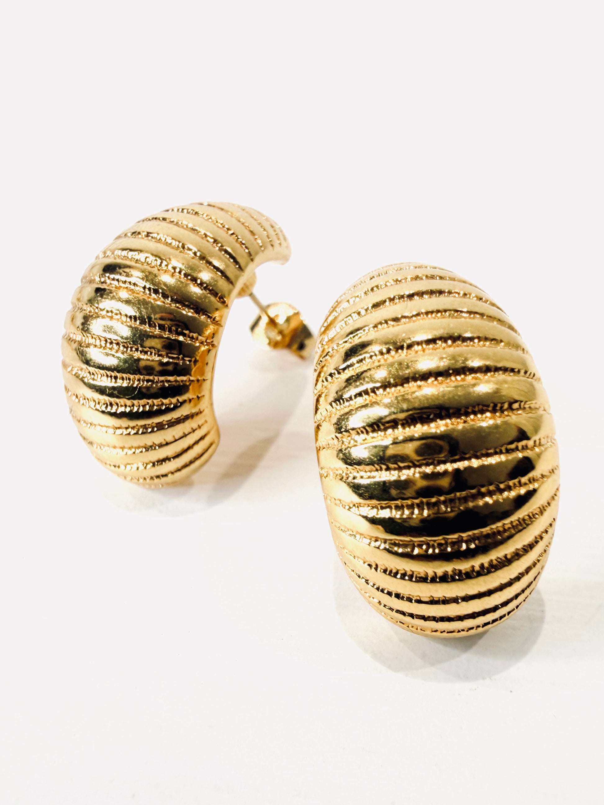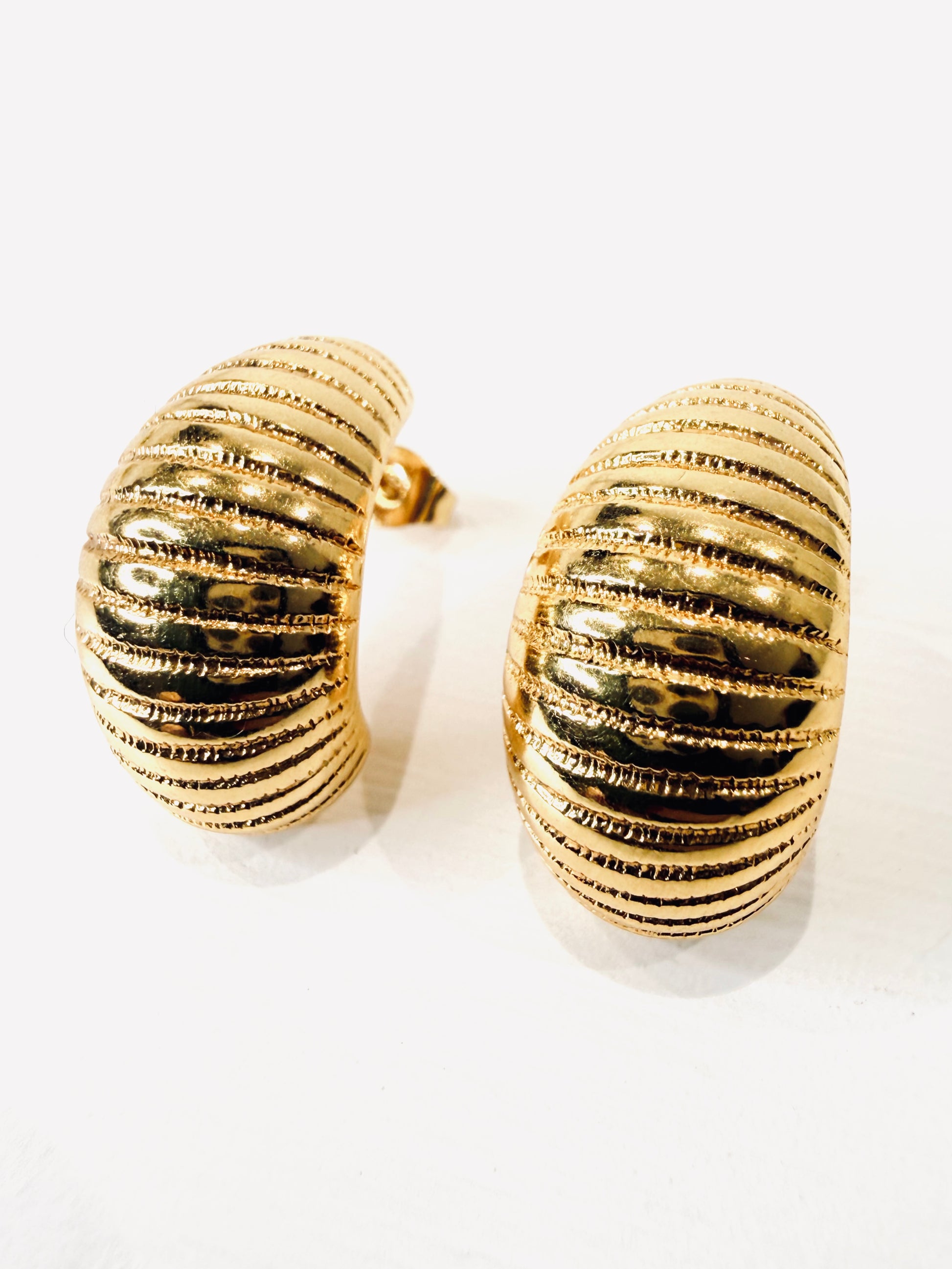 Raffinati Orecchini vintage realizzati in metallo d’orato lavorato con chiusura a farfallina.