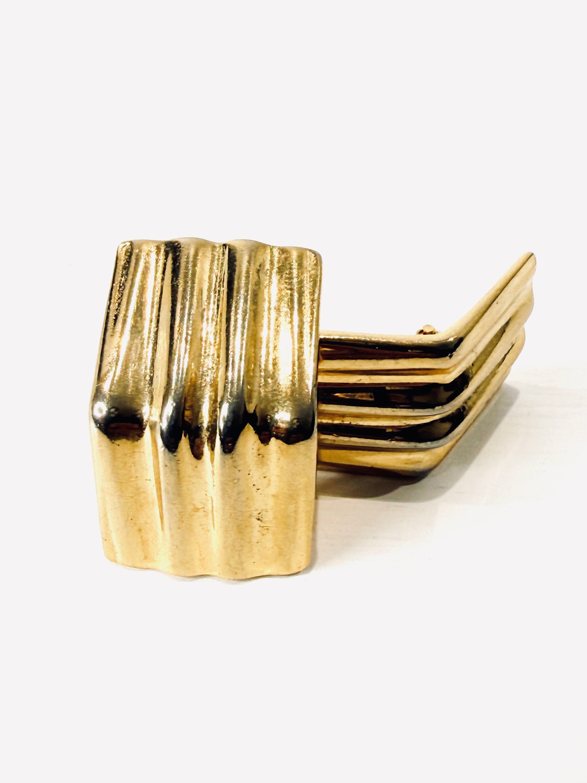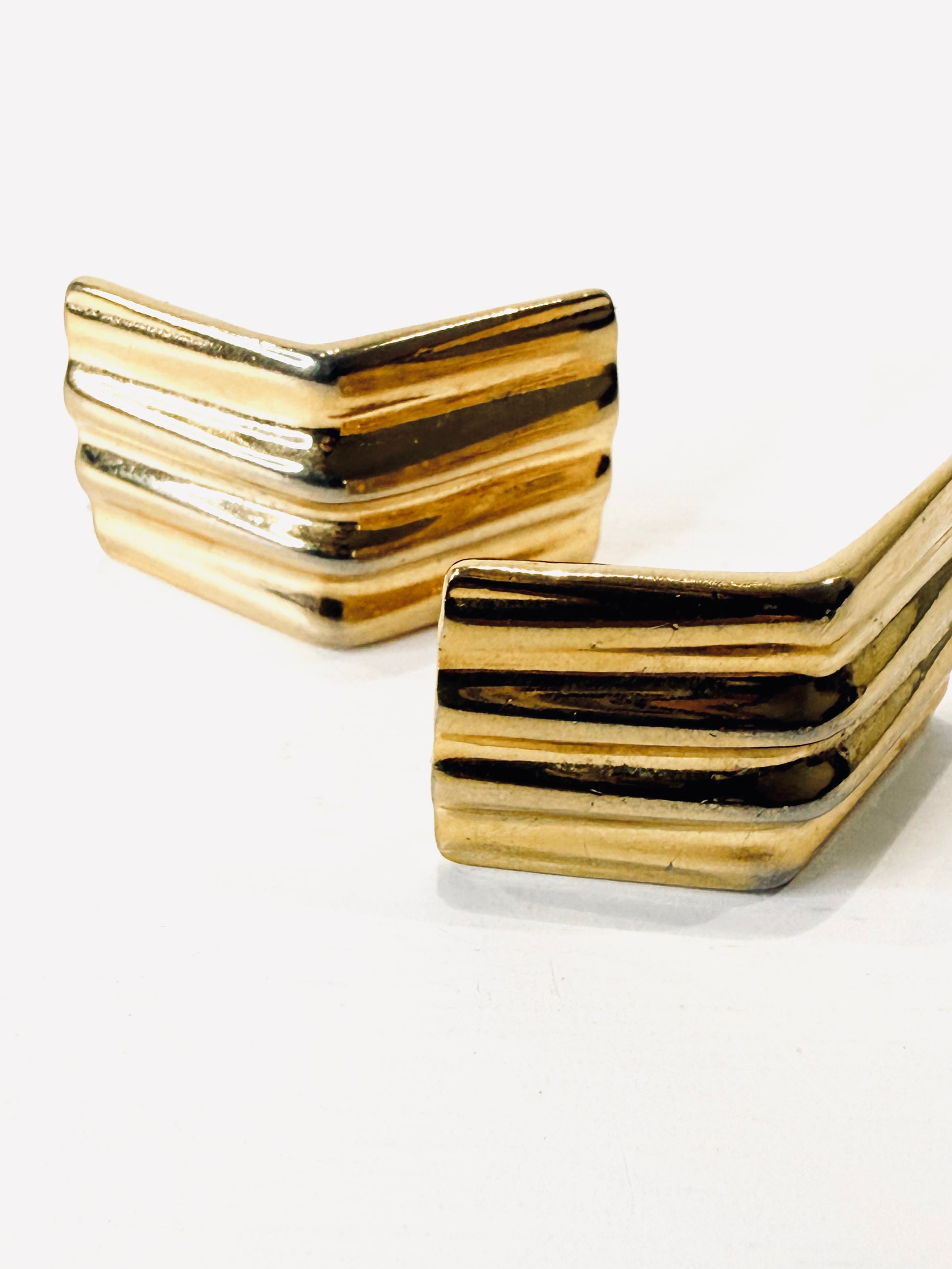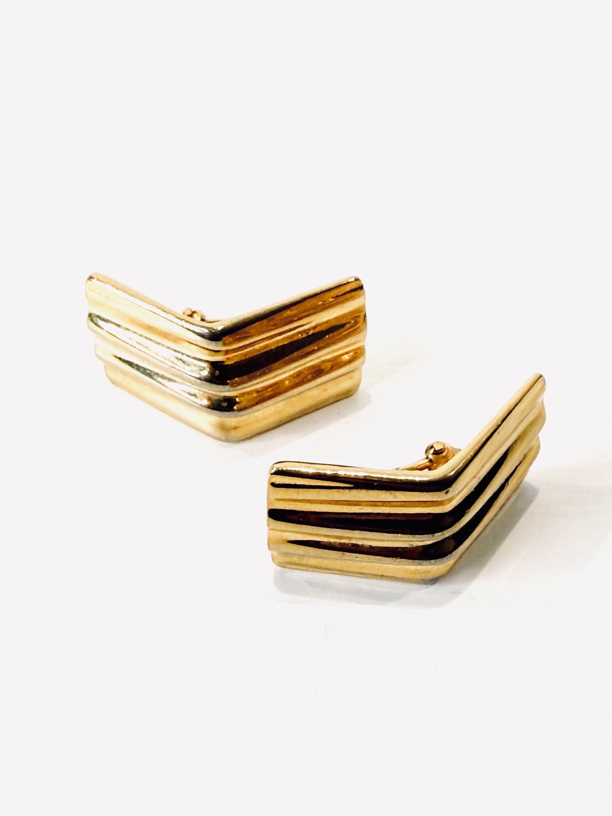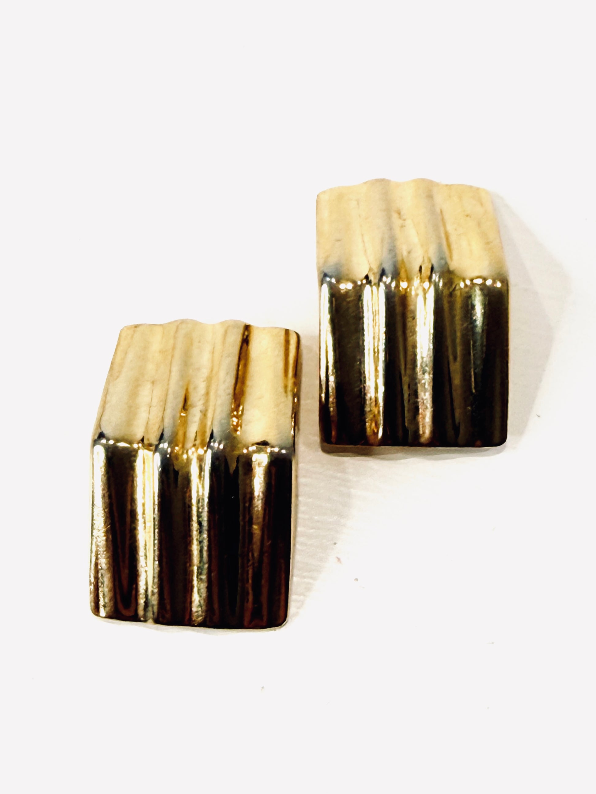 Raffinati orecchini vintage realizzati in metallo dorato con chiusura a clip. Periodo di riferimento: anni 80