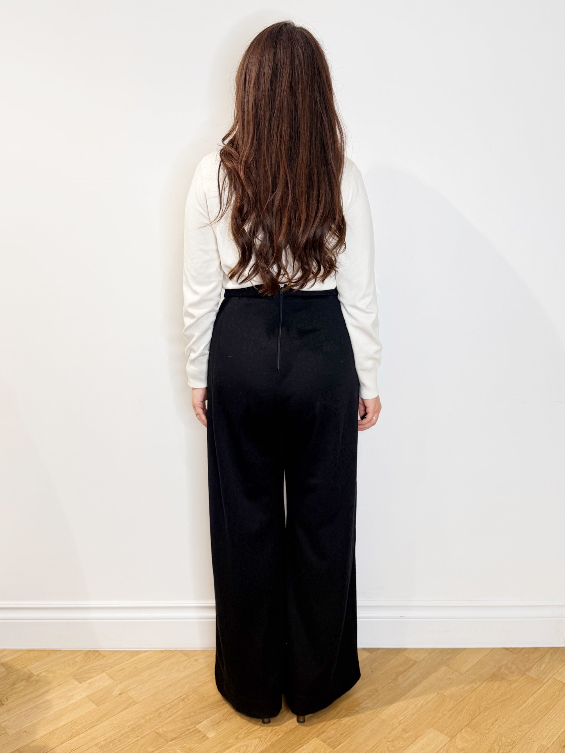 È un modello palazzo quindi cade morbido sui fianchi. Presenta due pences sul davanti, tasche e zip sul centro dietro. Questo articolo verrà realizzato per te in base alle tue misure.