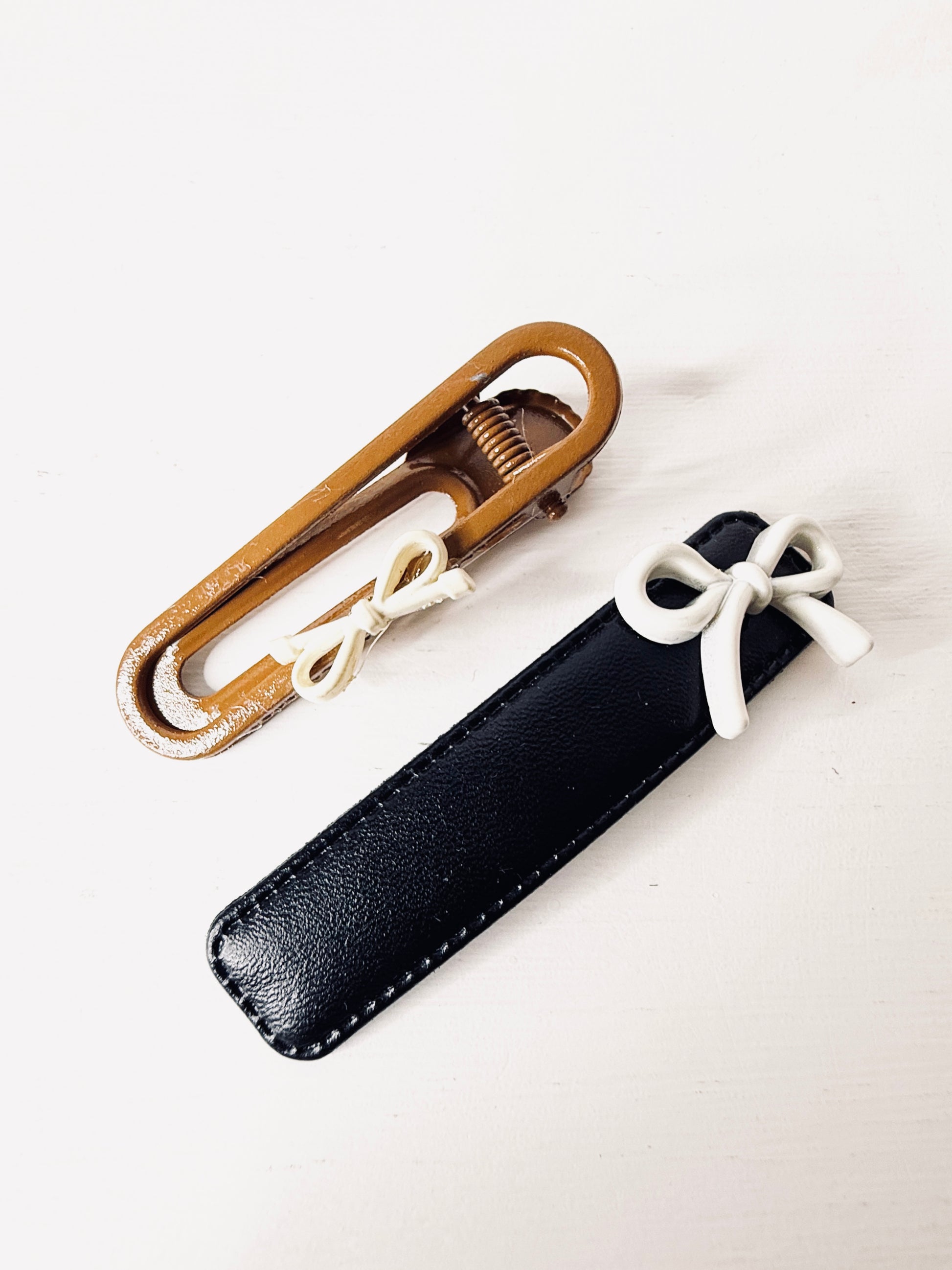 Set di due fermagli per capelli con fiocchetti applicati.